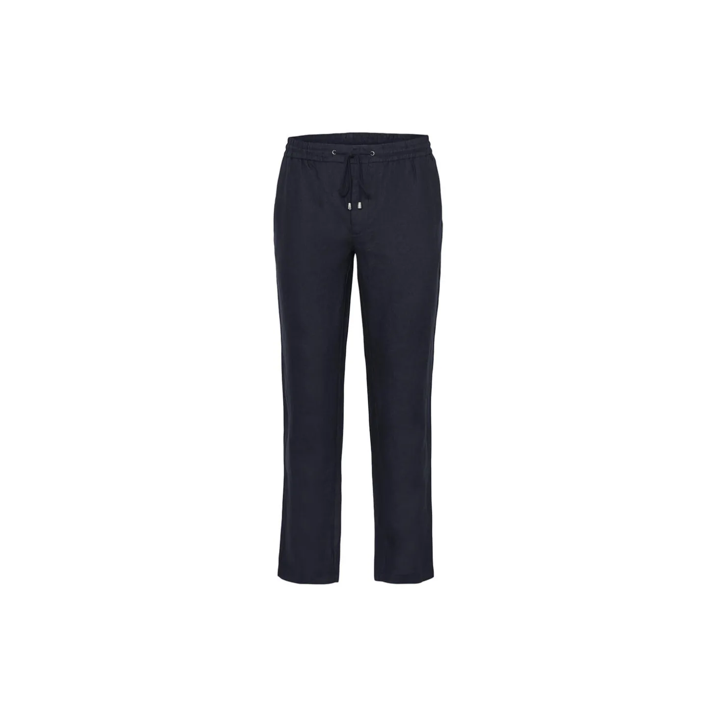 Modern fit string trousers with elasticated drawstring waistband. Two front pockets