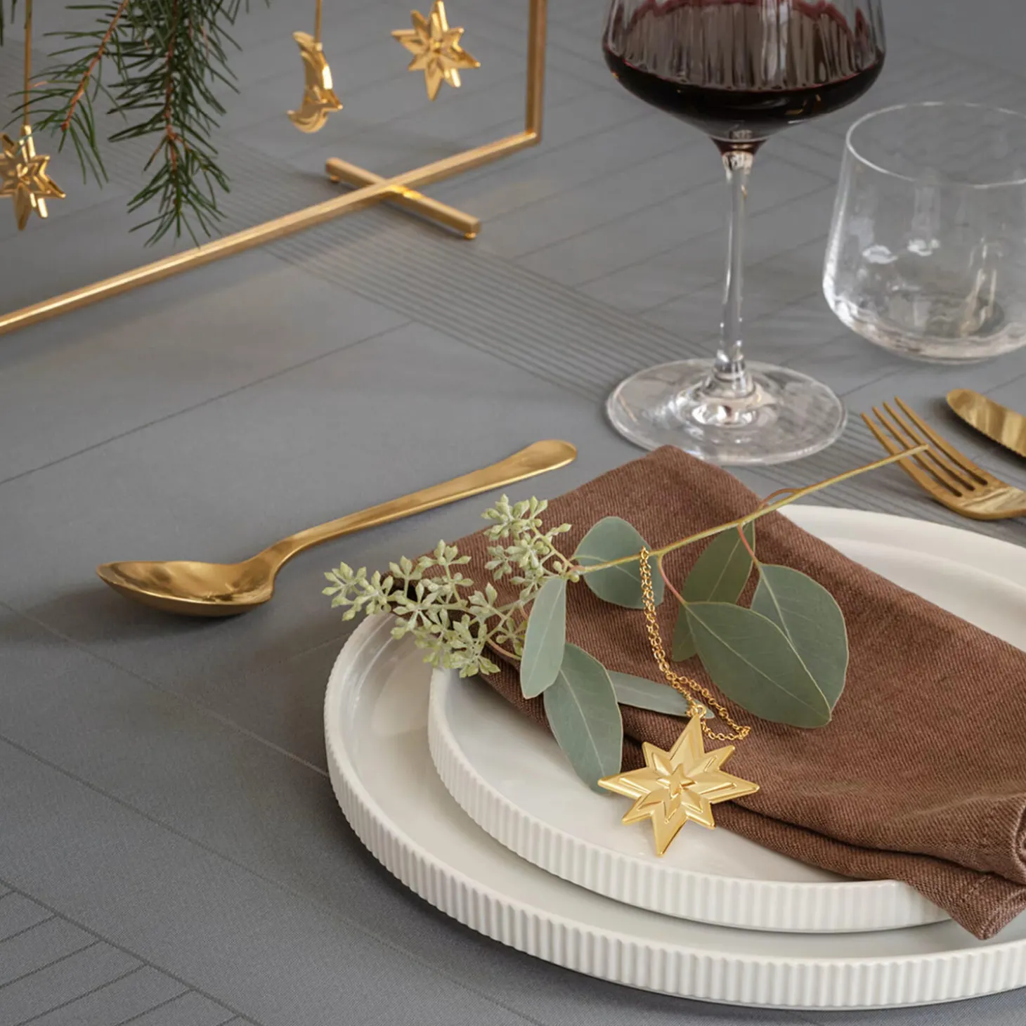 Dette funklende stjerneornament er designet af Georg Jensens mangeårige samarbejdspartner Sanne Lund Traberg. Ornamentet er en del af 2024 Julekollektionen, som henter inspiration fra nattehimlen. Den glimtende stjerne er belagt med 18 karat guld og hænger i en fin kæde. Et smukt ornament, som vil pynte i juletiden.