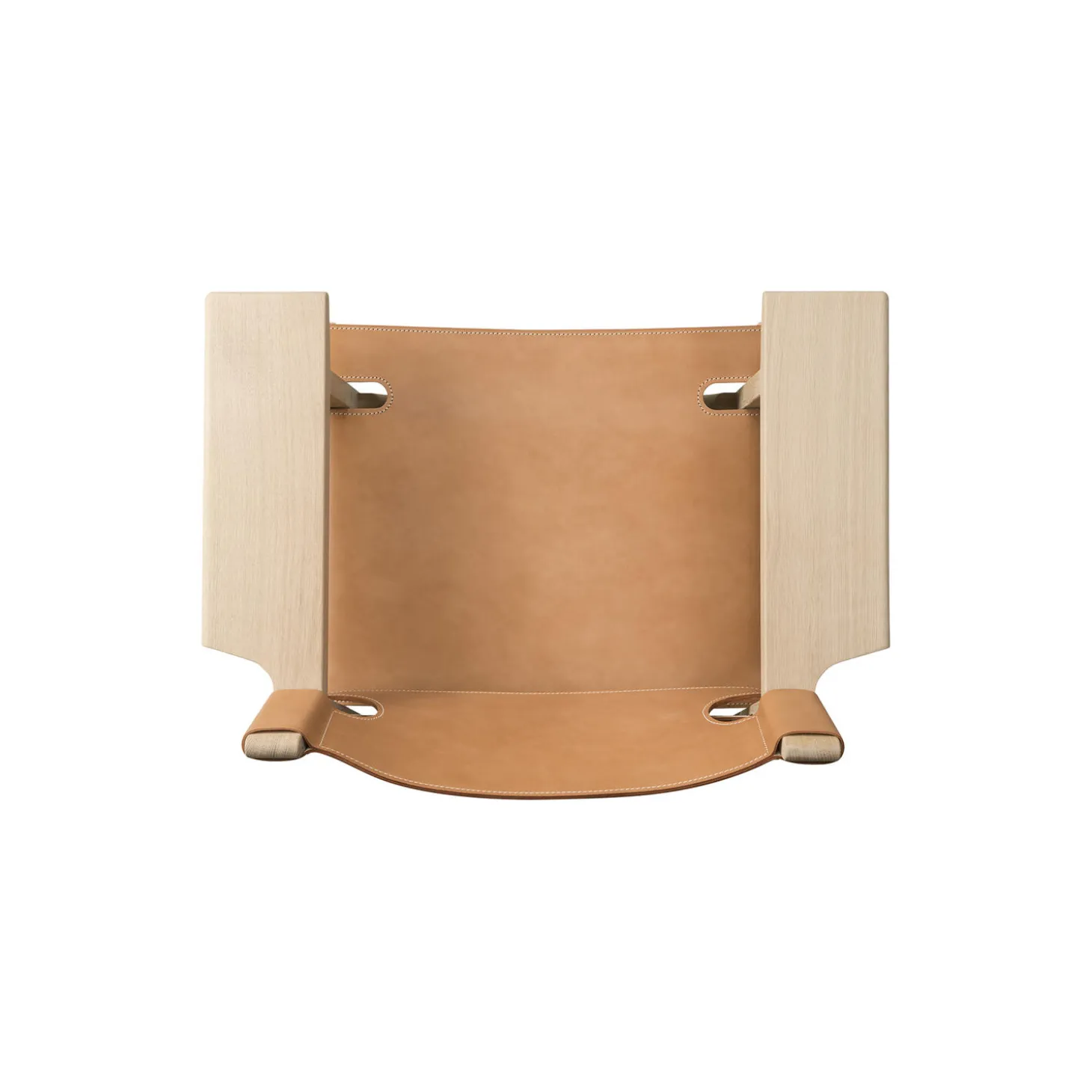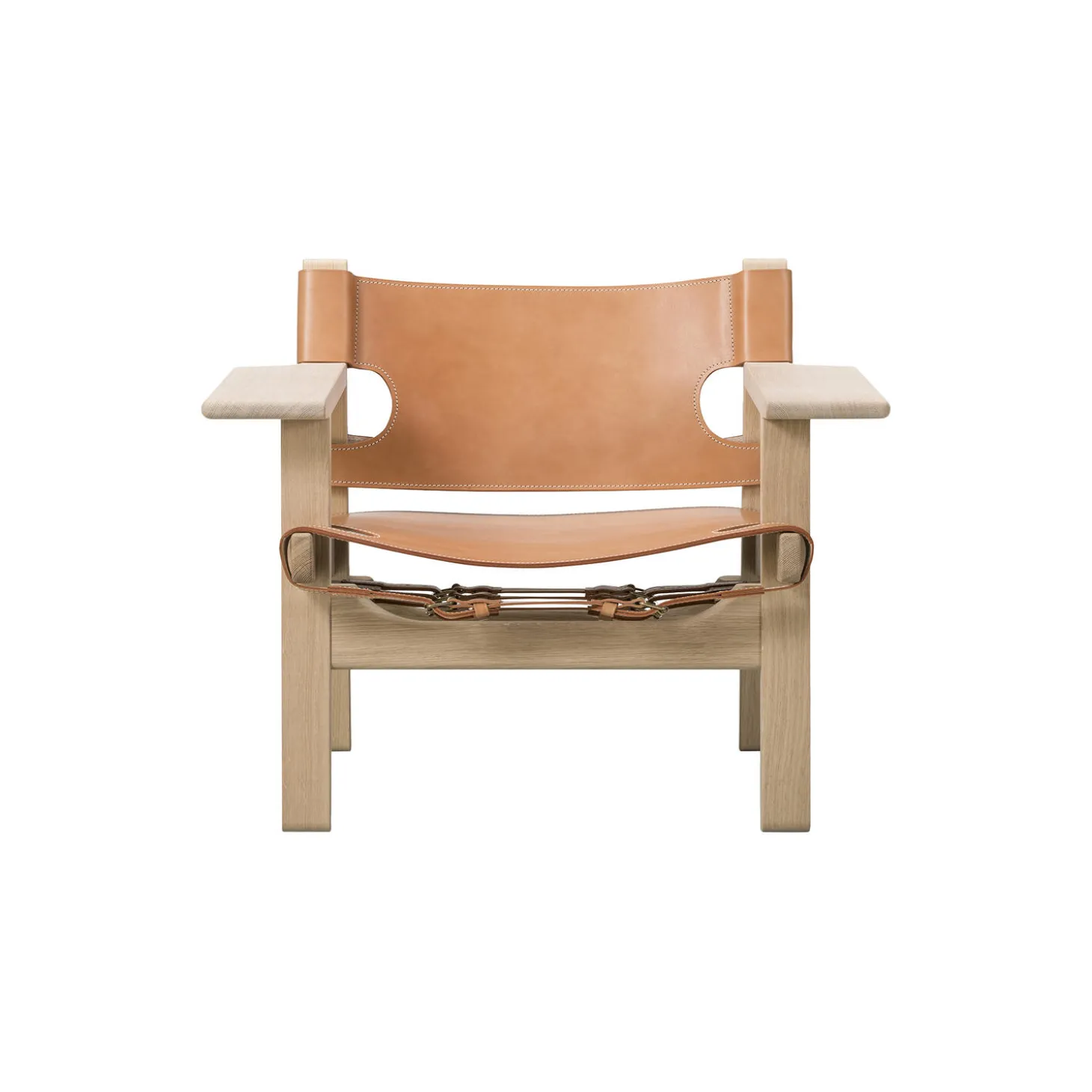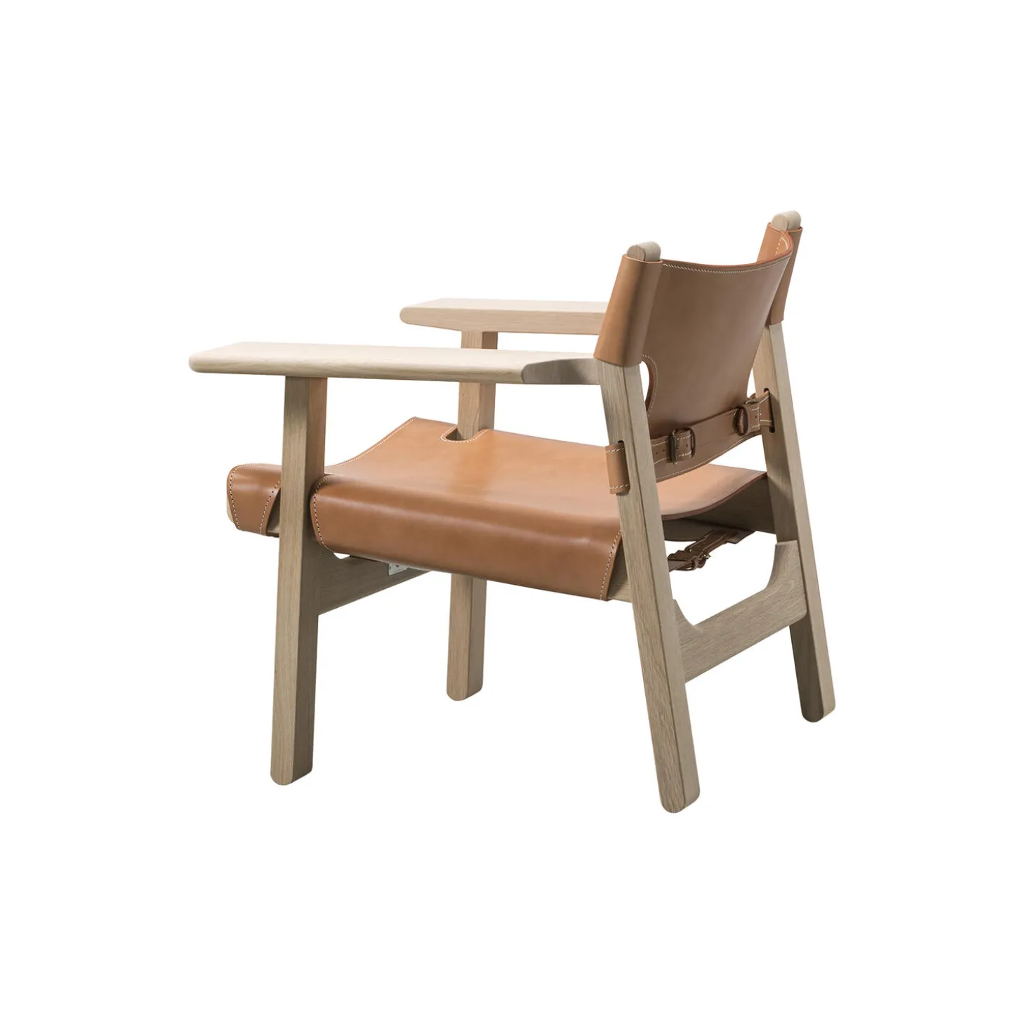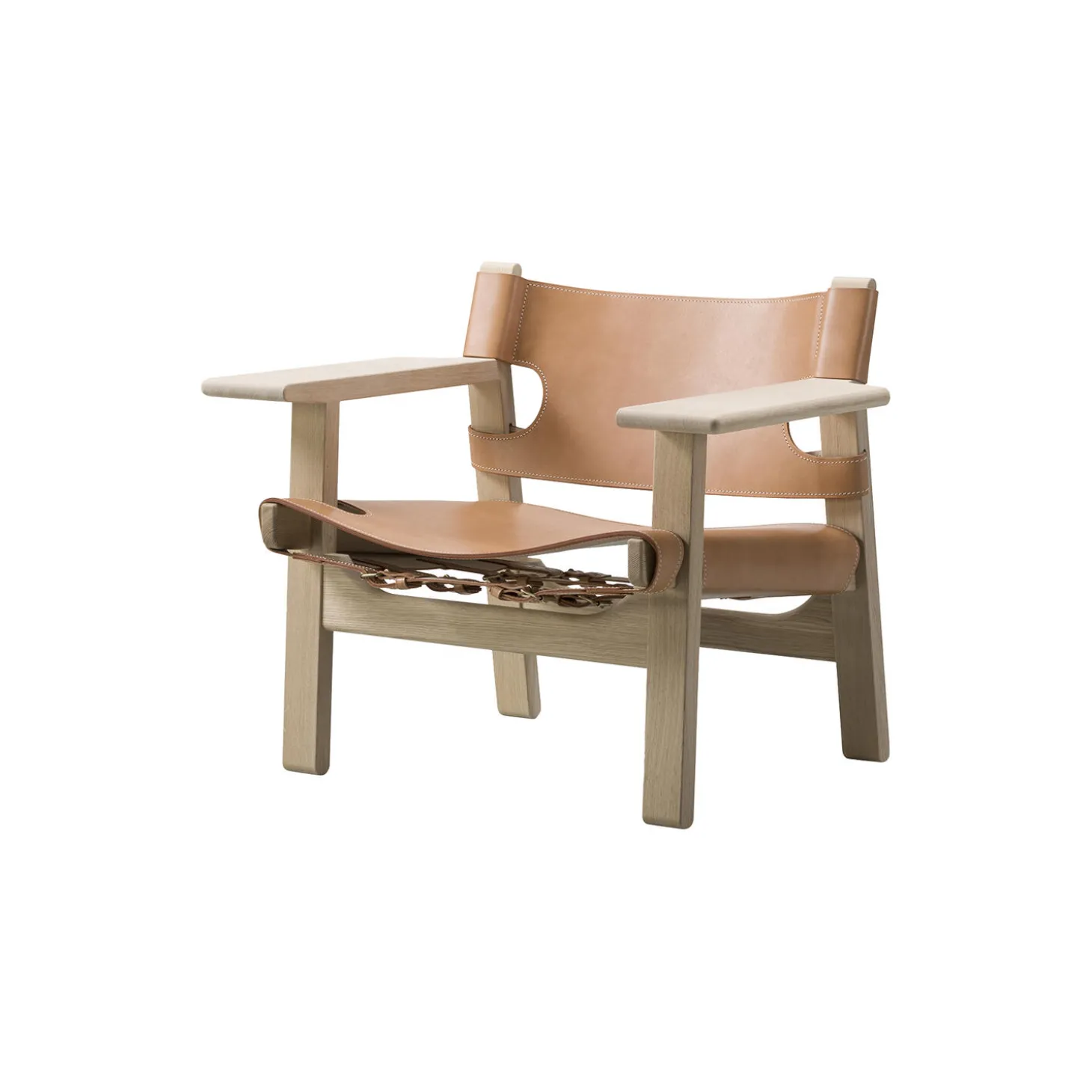 2226 Den Spanske Stol i sæbebehandlet eg og kernelæder fra Fredericia. Farve: natur/sæbebehandlet eg. Mål: H: 67 x B: 82,5 x D: 60 cm. Siddehøjde: 33 cm. Design: Børge Mogensen.