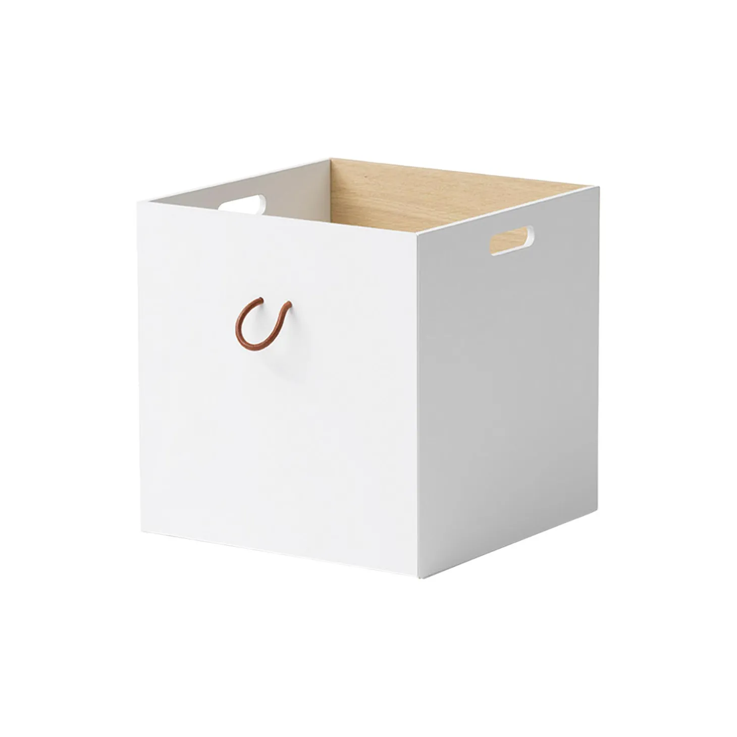 Wood opbevaringskasser passer til alle Wood reoler. Opbevaringskasserne har 3 hvide sider og en side i eg. Derudover har de 2 små greb af kernelæder til løft og udtræk. De 2 greb er monteret på kassens side i hvid samt på siden i eg. På den måde vælger man individuelt, om kassens front ud til rummet skal være hvid eller eg, en feature som har stor betydning for reolens udtryk.Wood opbevaringskasser er fremstillet i MDF, der er konstrueret træ, der består af 60% birk, 20% fyrretræ og 20% asp træ. MDF er meget stærkt og holdbart. Den ene side af opbevaringsboksen er lavet af fineret egetræ.Stilen er skandinavisk med rene linjer og fine detaljer som små greb af kernelæder.Opbevaringskasserne er produceret i Europa og overholder de strenge EU-krav for sikkerhed og sundhed. Kasserne er behandlet med ikke-giftig, vandbaseret maling og olie til hvid-olieringen.
