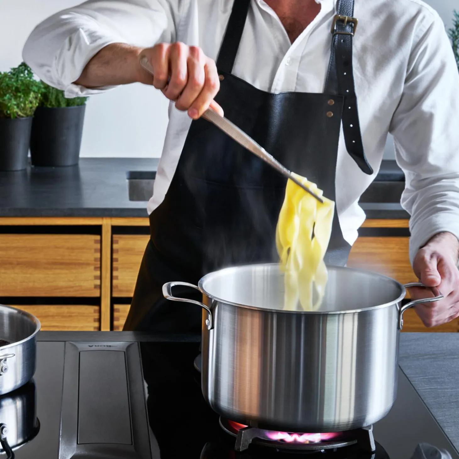 Med 5-ply får du en uopslidelig gryde, der holder hele livet med alle fordelene ved rustfrit stål: lav vedligeholdelse, egnet til alle typer madlavning, og så slipper du for PFAS og andre former for skadelige belægninger, der bliver slidt af med tiden og ender i maden. Ligesom resten af Gastrotools’ 5-ply-serie er gryden håndlavet i Italien på et familieværksted med over 130 års ekspertise, der omhyggeligt producerer hvert stykke køkkenværktøj. Opgrader dit køkken med en gryde i en størrelse, der er perfekt til at koge en hjemmelavet fond, kreere smagfulde supper eller tilberede store gryderetter til hele familien. Gryden har hældekant og giver en utrolig jævn varmefordeling på grund af konstruktionen i fem lag. Derfor undgår du hotspots i bunden af din gryde, der kan resultere i skilte saucer, brændt mad og ujævn tilberedning. Brug og pleje: Tåler opvaskemaskine og ovn op til 300 grader. Kompatibel med alle varmekilder, også induktion. Varm gryden op på middel varme.