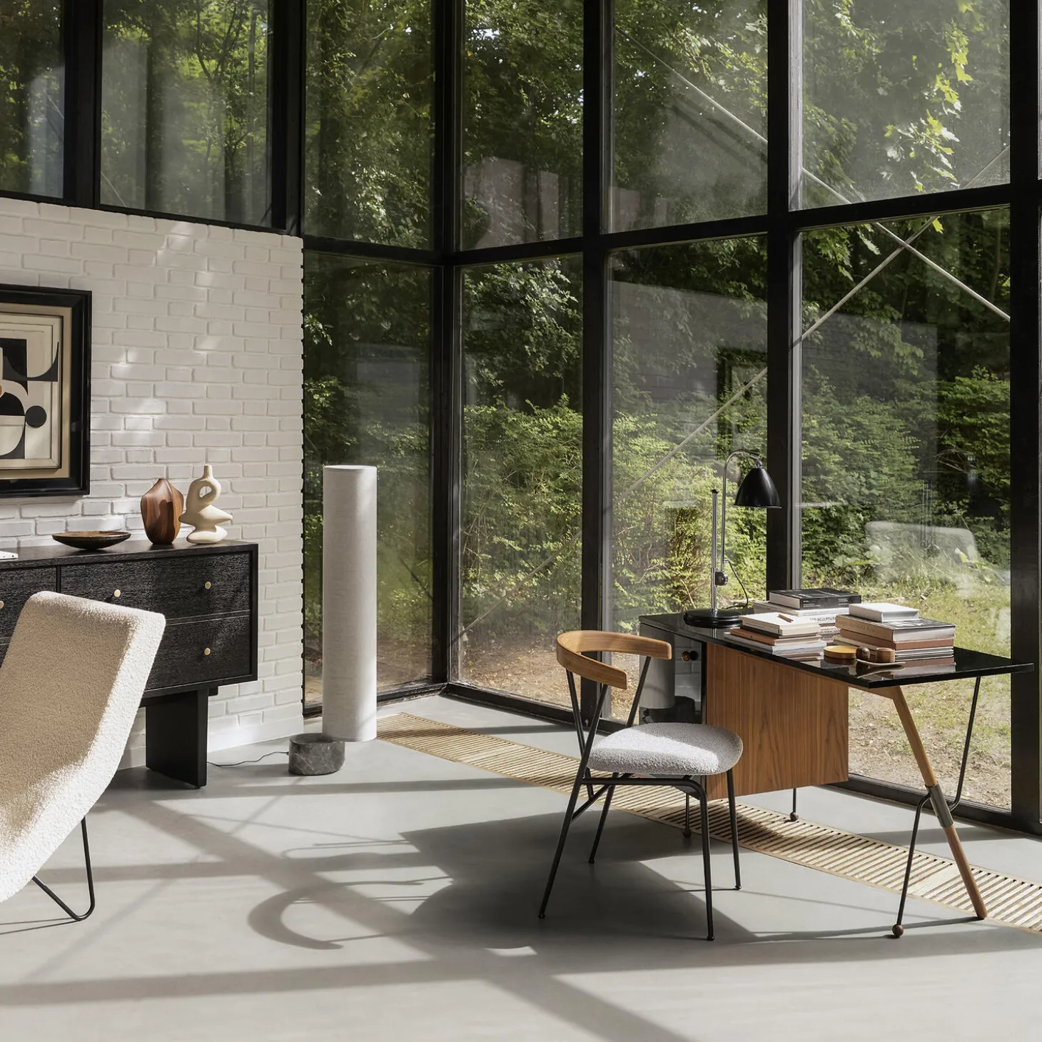 - Materiale: amerikansk valnøddetræsfinér, laminat og pulverlakeret stål