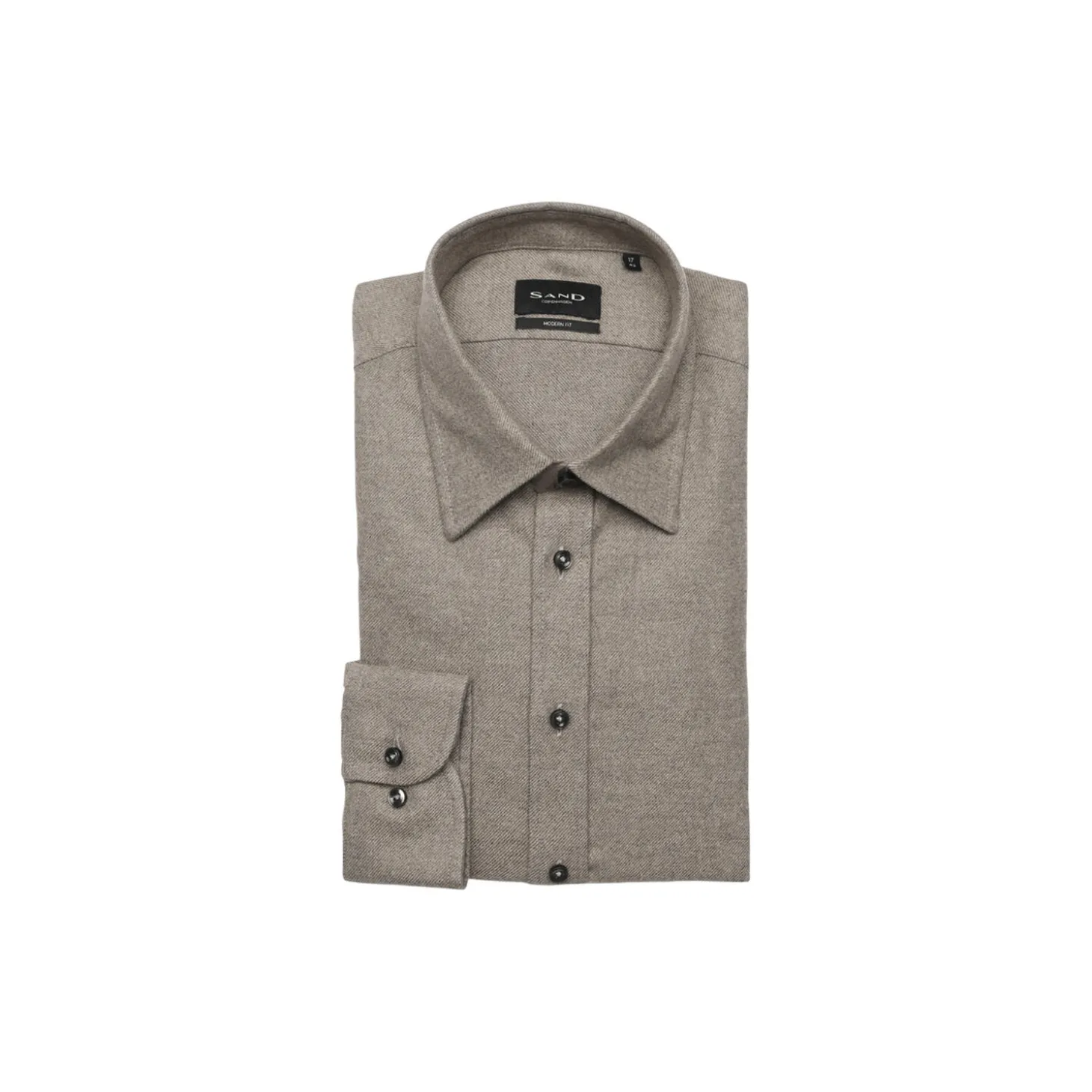 Modern fit shirt. Moderate cut-away collar. Two darts at back. Adjustable single cuff