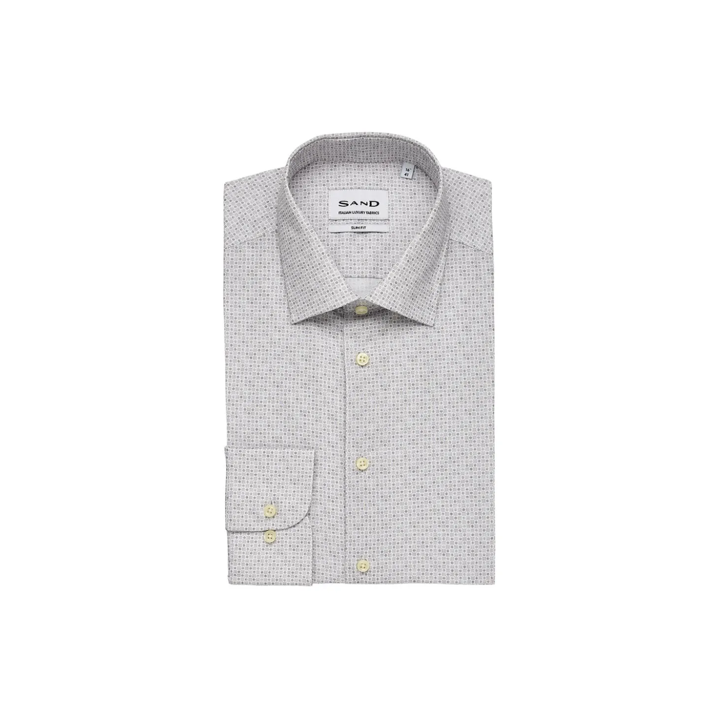 Modern fit shirt with moderate cut-away collar. Two darts at back and adjustable single cuff