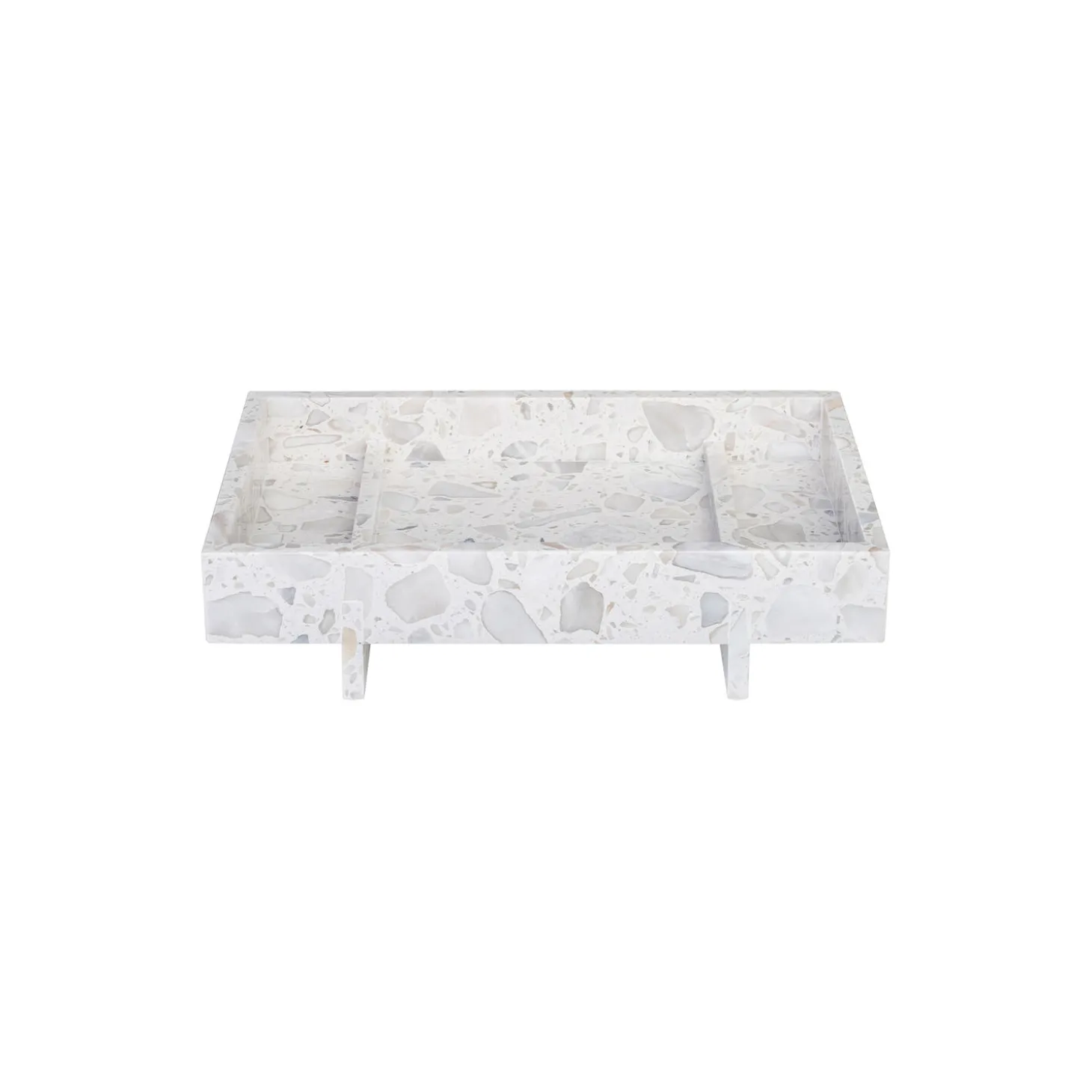 Available in three different natural and artificial stones Rosso Levanto, Tundra and Terrazzo, ABENTO now also appears in marble. The proportions have been adapted to the stone material without changing the design, so that for an elegant decoration, this tray fits perfectly. Care instructions: Please wipe the tray with a damp cloth. Do not soak it and please avoid contact with greasy food as well as acidic cleaning agents.