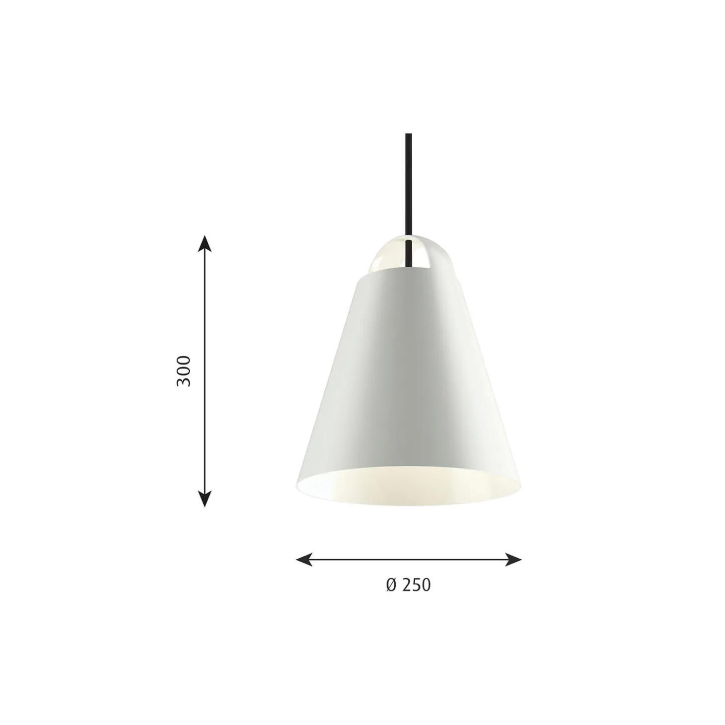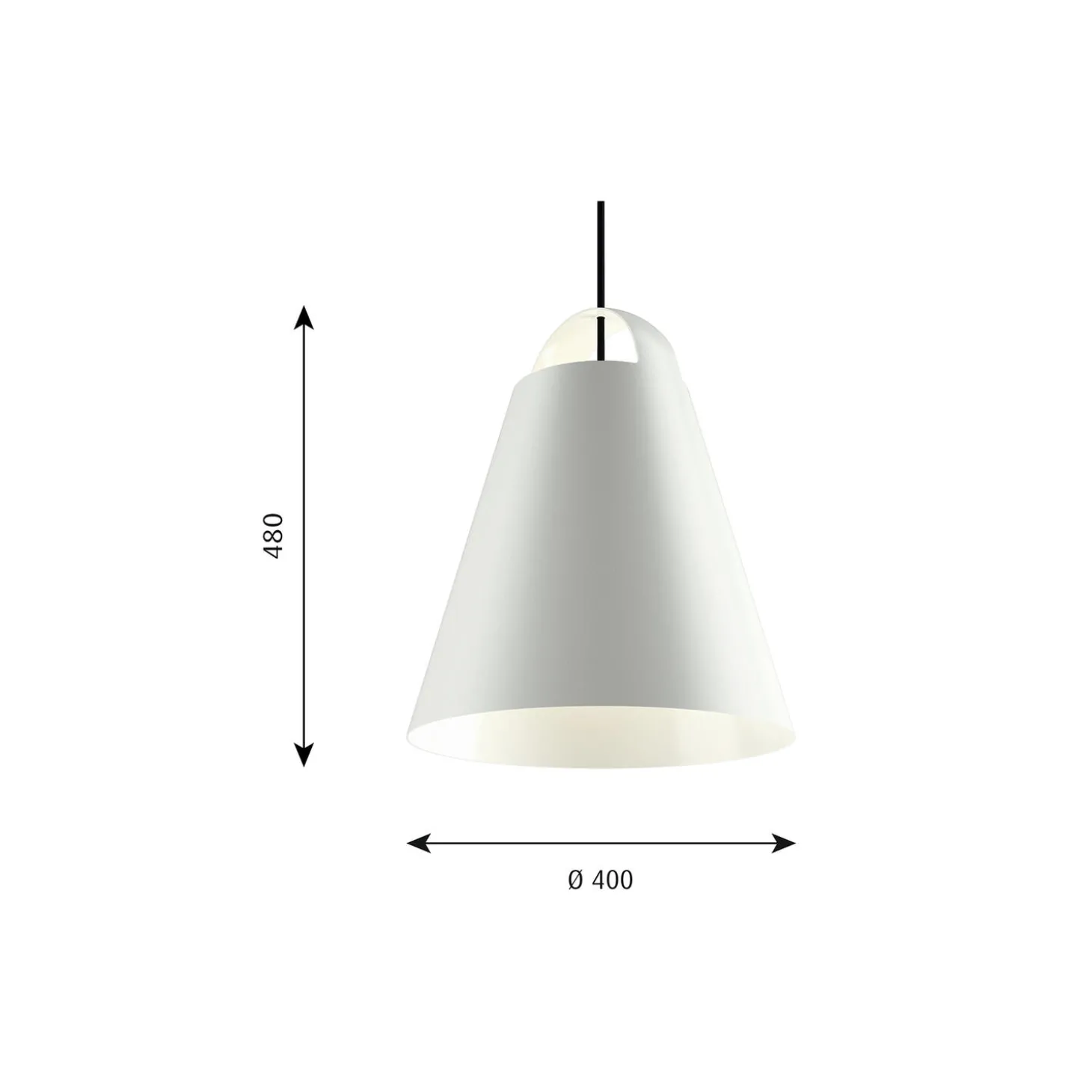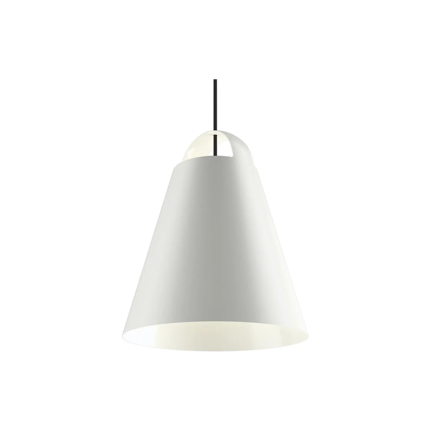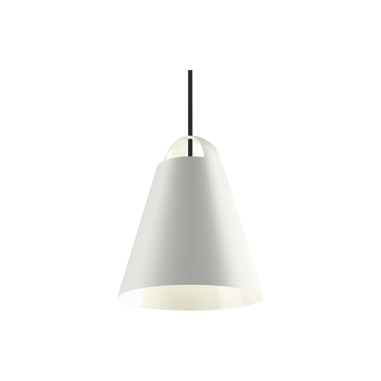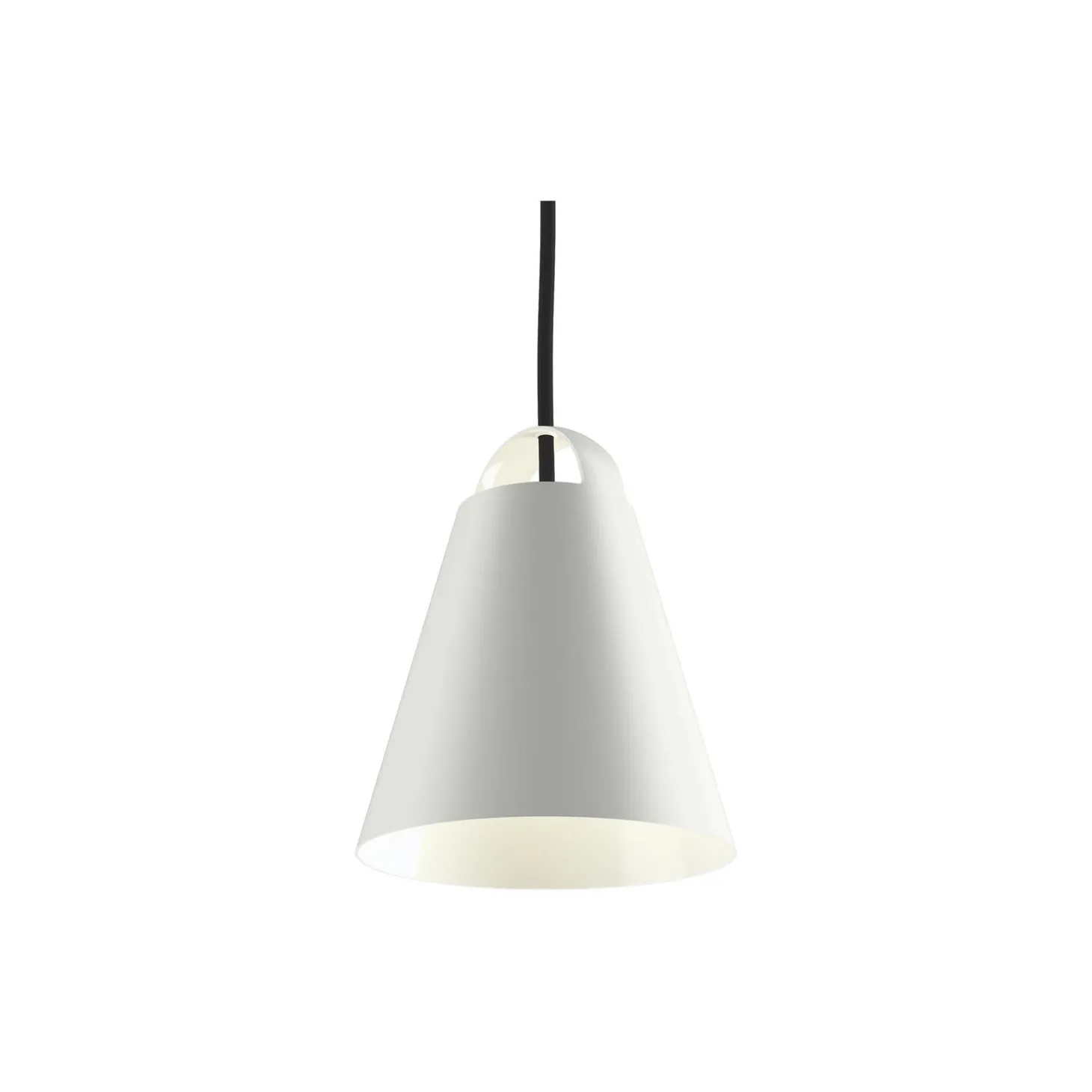 Above pendel i optrukket aluminium fra Louis Poulsen. Farve: hvid. Mål: H: 21 x Ø 17,5 cm. Ledningslængde: 3 meter. Lyskilde: 60W E27. Design: Mads Odgård.