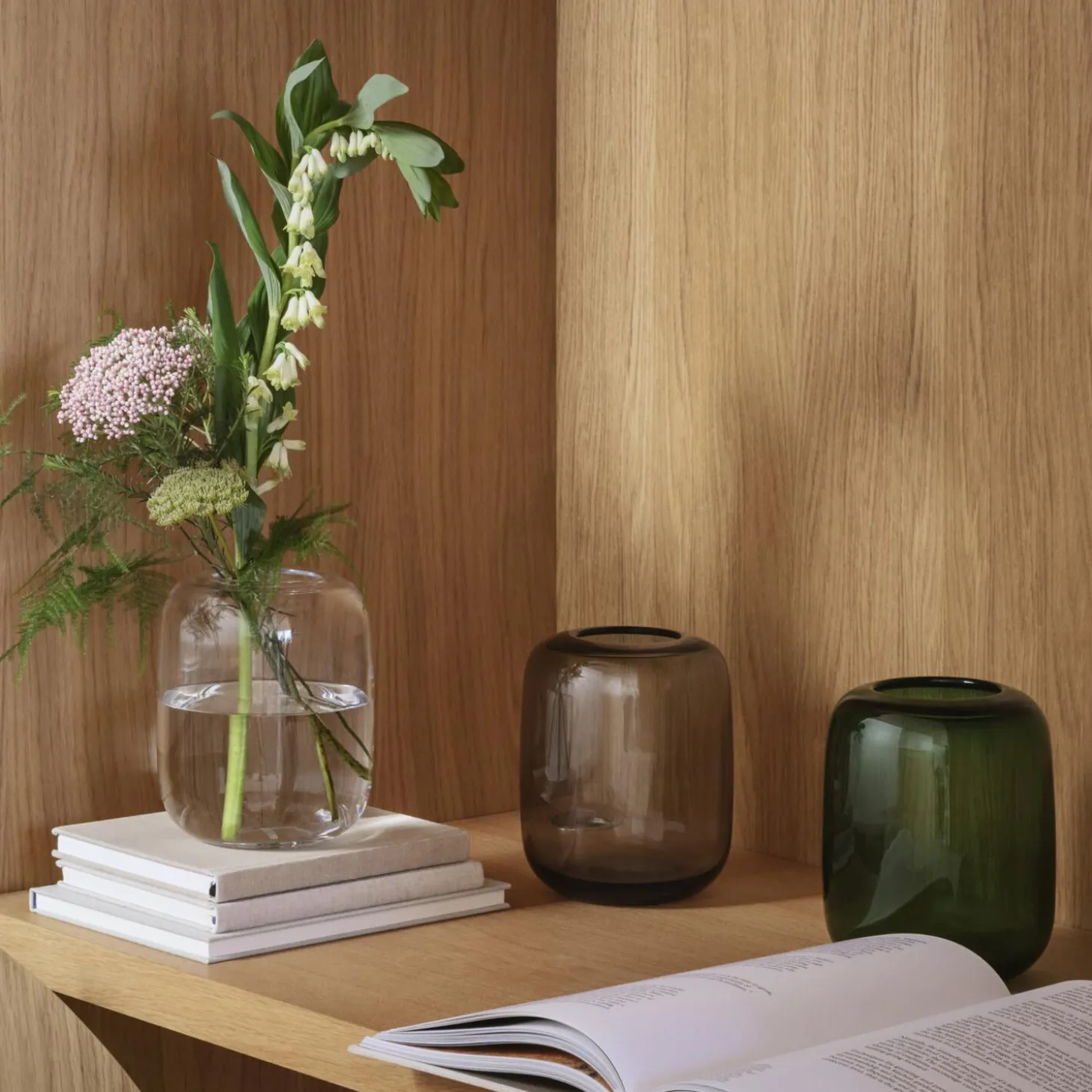 Selv uden årstidens blomster eller grene er Acorn glasvasen noget helt særligt. Med sit organiske og enkle ydre kommer vasen til sin ret i ethvert hjem. Praktisk indsnævring i vasens top får buketter til at stå pænt med smuk refleksion af lyset i glasset. Vasen er også dekorativ med blot en enkelt afskåret blomst. Tåler maskinopvask.