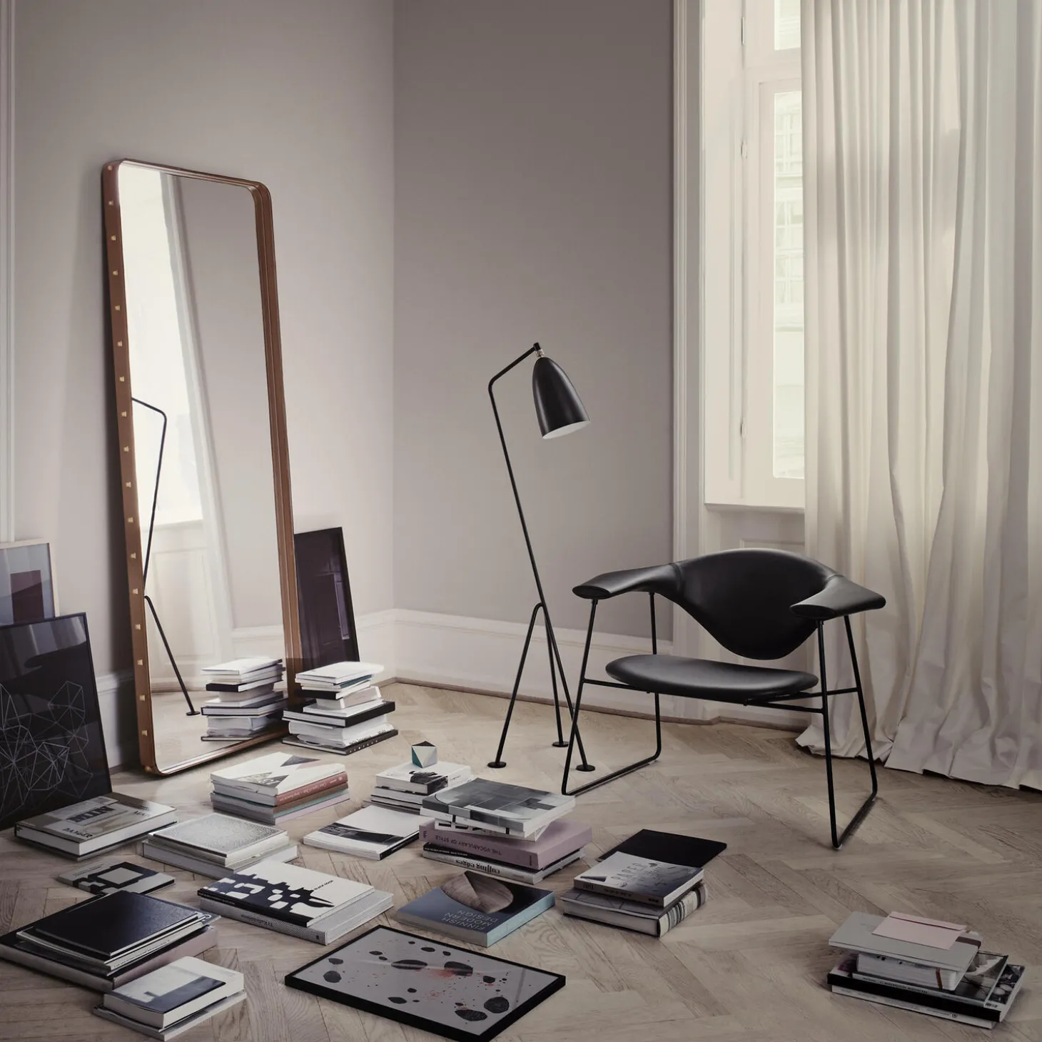 - Materiale: læder og spejlglas