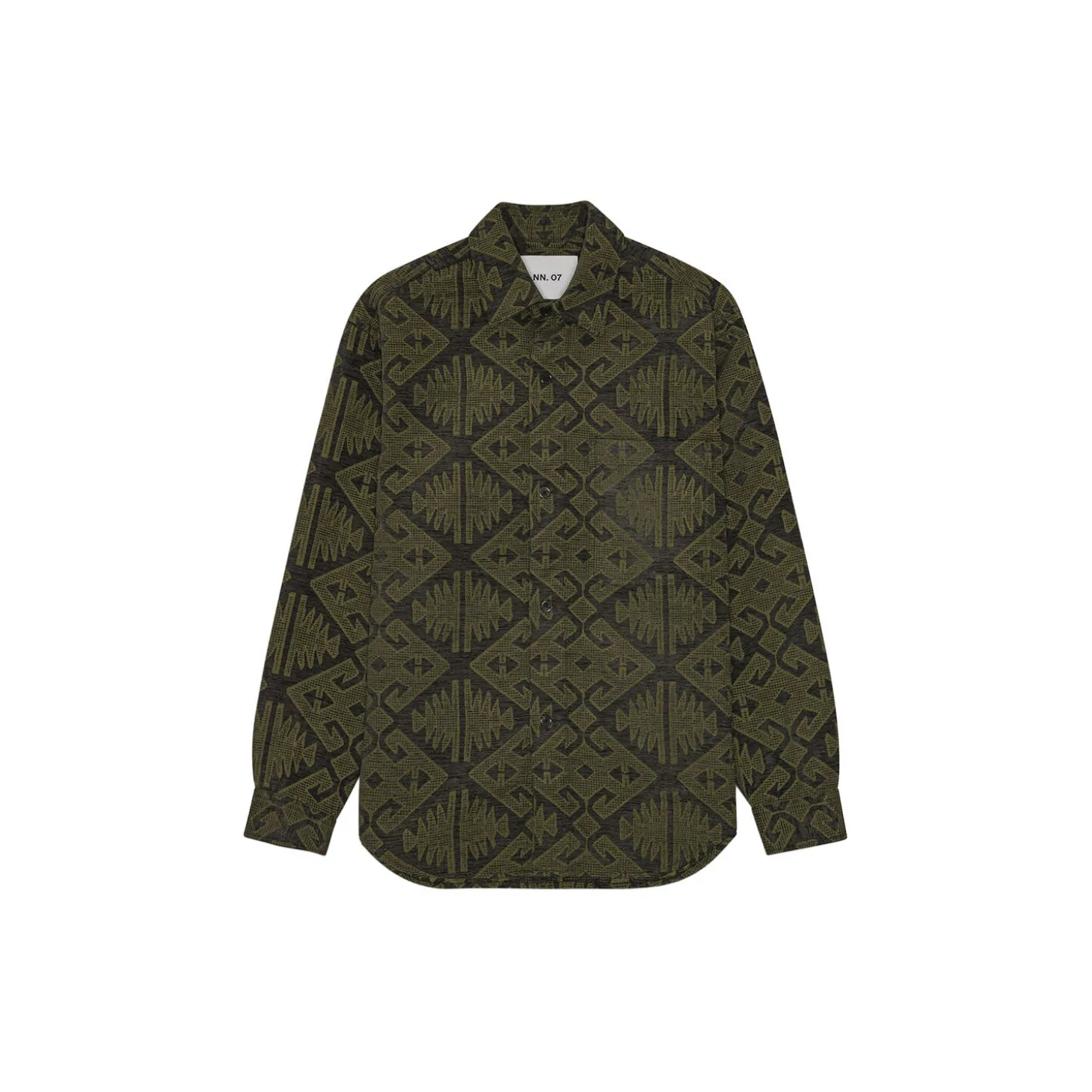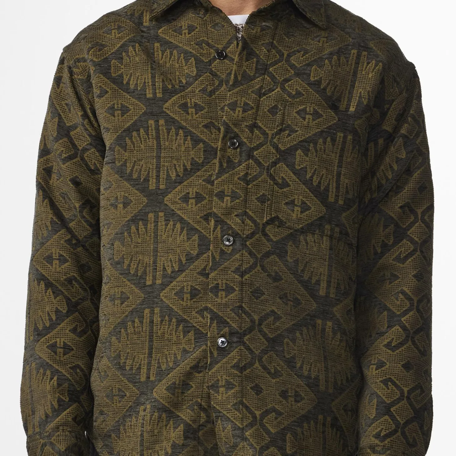 Relaxed fit hybrid crafted from a soft textured polyester jacquard. Designed with Mother-of-Pearl buttons and an ornamental jacquard pattern.