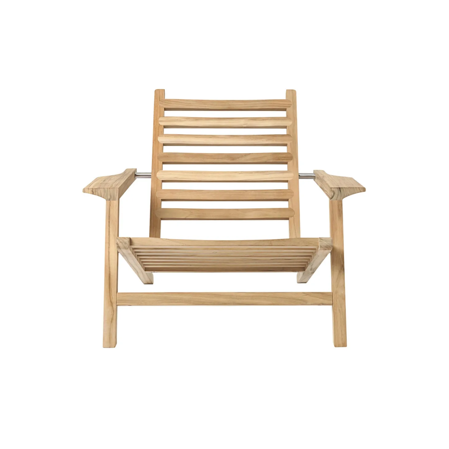 Den komfortable Outdoor Dækstol er en del af AH Outdoor-serien, designet af Alfred Homann i 2022. Ligesom de øvrige udendørsmøbler i serien er dækstolen kendetegnet ved stringente linjer elegant kombineret med bløde, afrundede detaljer. Komfort er i højsædet med nøje afmålte vinkler i sæde og ryglæn. Dækstolen er udført i FSC-certificeret teak, en hårdfør træsort der patinerer smukt over tid. Hynden sælges separat.