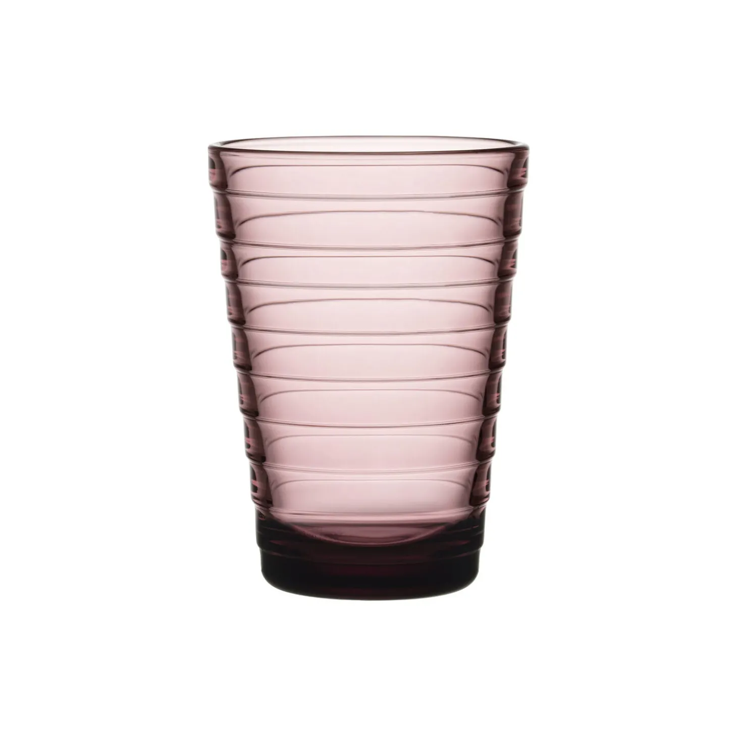 The versatile tumbler (33 cl) designed by Aino Aalto is now available in the beautiful calluna colour. Inspired by nature, the colour is easy to combine with other pieces in the series. The dishwasher-safe tumbler is suitable for both everyday table settings and special occasions. The larger tumbler (33 cl) is perfect for enjoying cold beverages. The Aino Aalto series has been produced by Iittala since its introduction in 1932. The pressed glassware tumbler is inspired by the circles that form when a stone is thrown into the water. It is available in two sizes and several colours that are easy to combine. The charmingly simple shape of the Aino Aalto tumblers is based on versatility and stackability. A set includes two tumblers (33 cl).