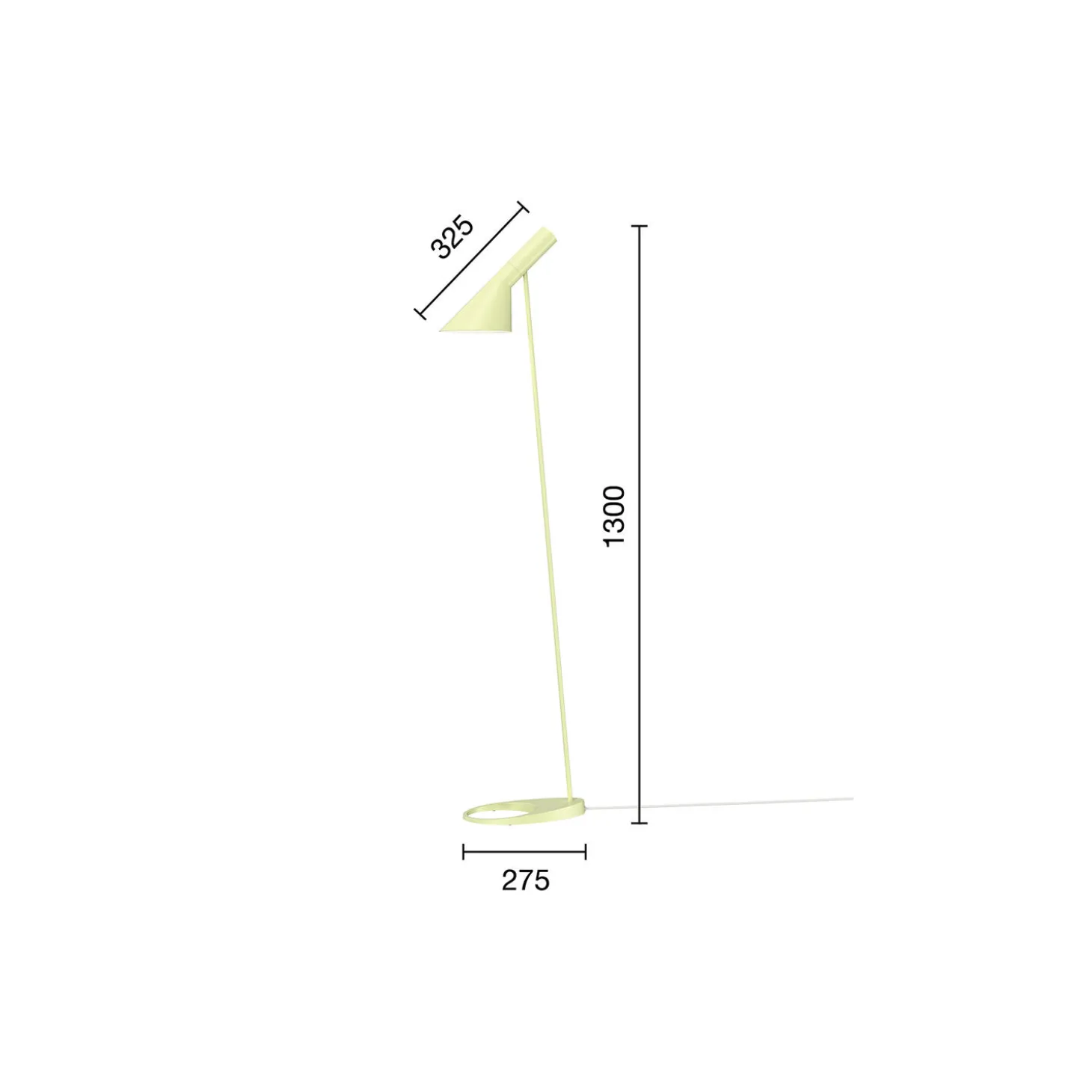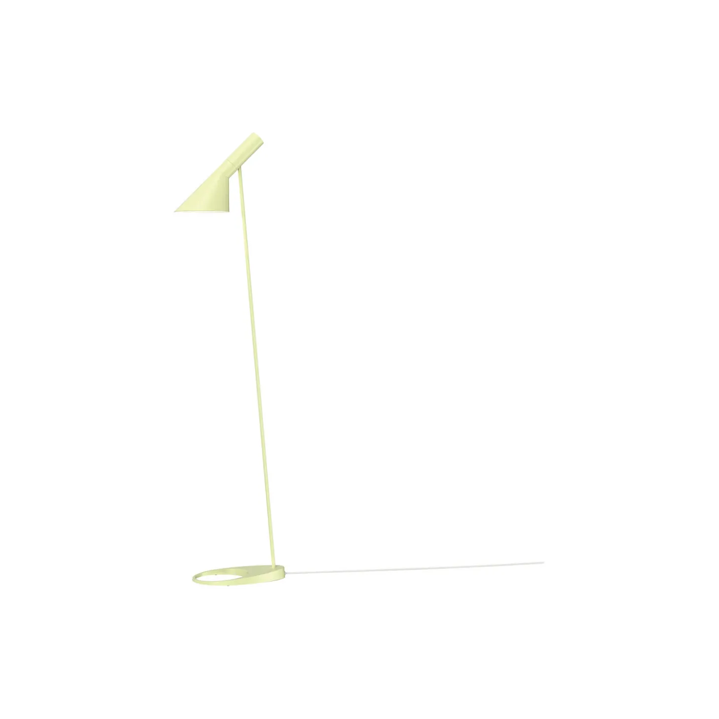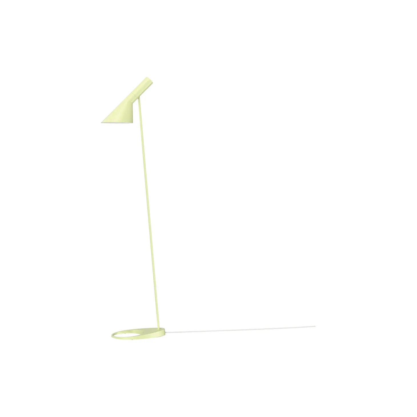 AJ lampen er designet i 1957 til SAS Royal Hotel i København og er et ikonisk design af Arne Jacobsen. Designet er grafisk og rent i sit udtryk, hvilket giver et tidløst look, der passer ind i forskellige farvepaletter, som er afstemt med moderne indretningstrends. AJ gulvlampen giver et nedadrettet lys, og skærmens vinkel kan justeres, så den passer til brugerens behov. Farven er malet hvid på indersiden, hvilket giver et ensartet, blødt lys.