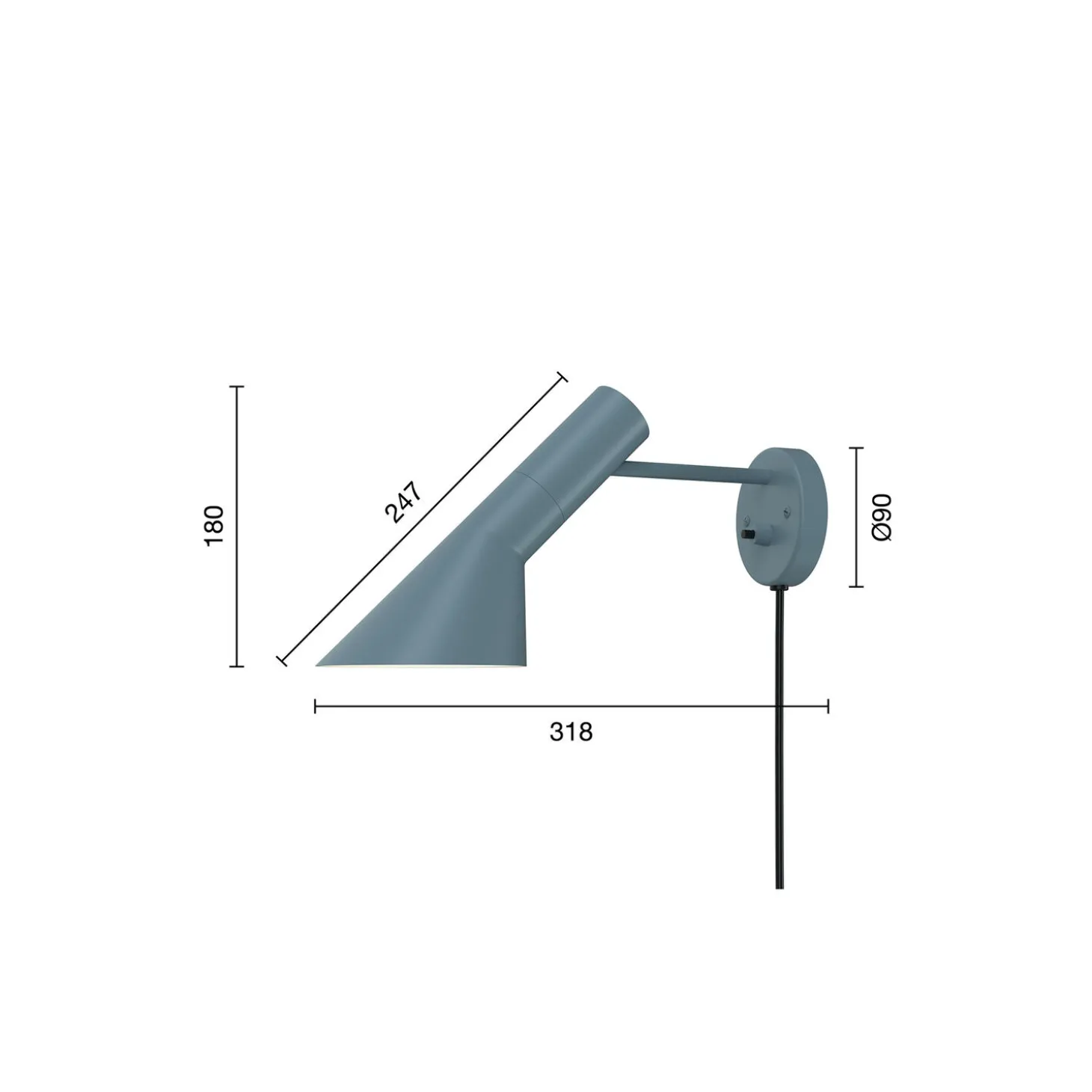 AJ lampen er designet i 1957 til SAS Royal Hotel i København og er et ikonisk design af Arne Jacobsen. Designet er grafisk og rent i sit udtryk, hvilket giver et tidløst look, der passer ind i forskellige farvepaletter, som er afstemt med moderne indretningstrends. AJ væglampen giver et nedadrettet lys, og skærmens vinkel kan justeres, så den passer til brugerens behov. Farven er malet hvid på indersiden, hvilket giver et ensartet, blødt lys.