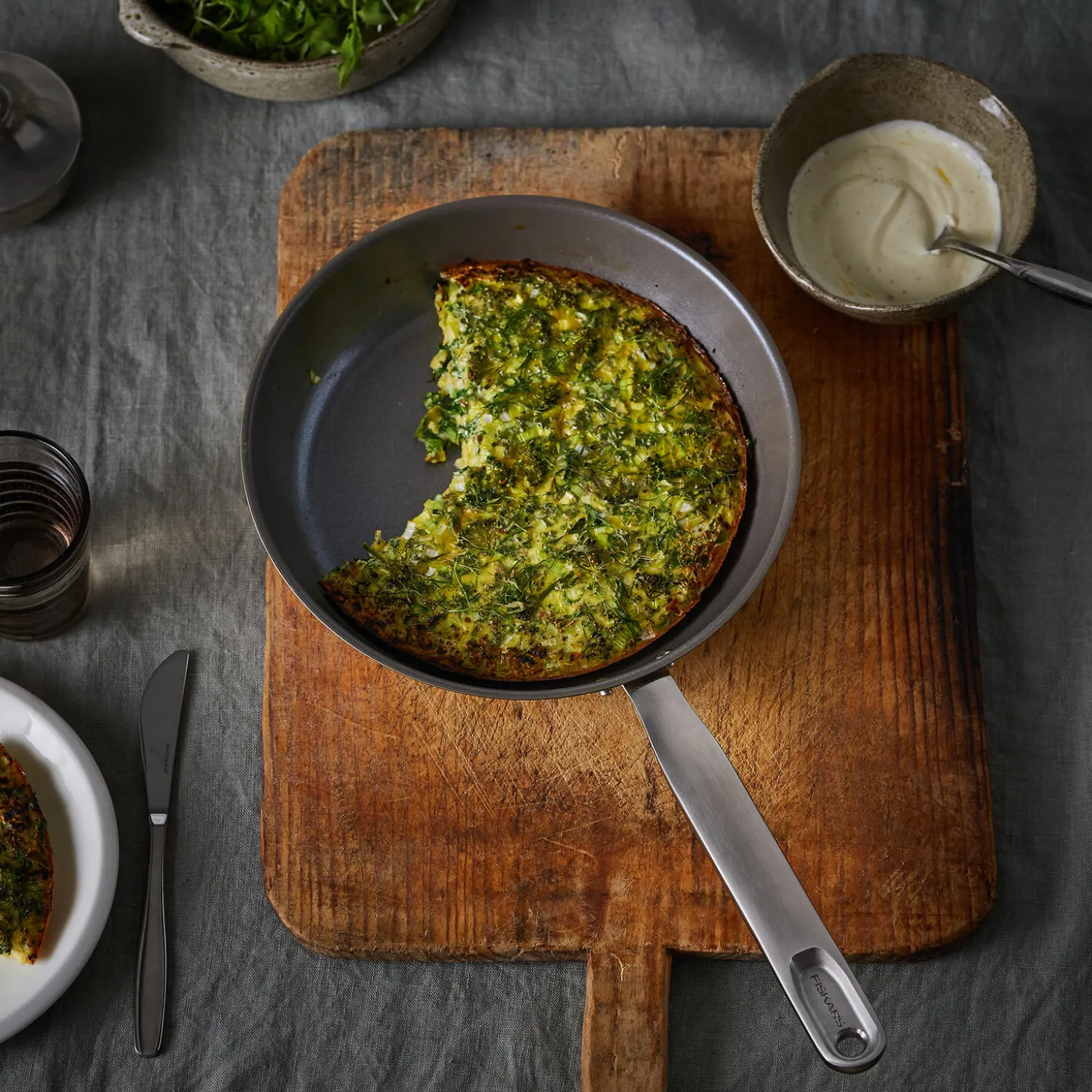 Fiskars All Steel stegepande 24 cm giver madlavningen et løft med genanvendt rustfrit stål i høj kvalitet, som minimerer affaldsmængden. Panden er fremstillet af 90 % genanvendt stål med 92 % lavere CO2 udledning end gennemsnittet i branchen og er utrolig holdbar. Takket være dens non-stick Ceratec™ belægning, der giver en fin stegeskorpe og kan bruges ved høje temperaturer, er du sikker på at opnå perfekte stegeresultater. Den tykke 3-lags bund er optimeret til effektiv og jævn varmefordeling på alle typer kogezoner. Pandens tidløse, simple udtryk passer perfekt ind i det moderne, bæredygtige køkken og gør hvert måltid til en god oplevelse. Fremstillet i Finland med bæredygtige processer og produktionsmetoder.