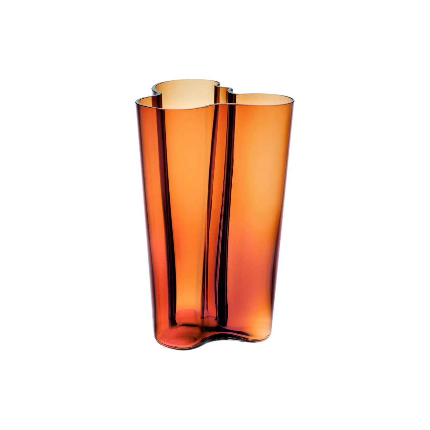 The shape of the Aalto 251mm vase follows the iconic waves of the classic Savoy vase. Thanks to its height and narrower proportions, the vase is perfect for tall flowers such as roses. Now available in warm copper. Architect Alvar Aalto created the Aalto collection for Karhula-Iittala Glass Design Competition in 1936. Compared to the decorative style of the time, his simple and organic vases were a revolutionary statement. Since then, the collection has become a staple of modern Scandinavian design. Each Aalto vase is mouthblown and hand-crafted at the Iittala Glass Factory in Finland.