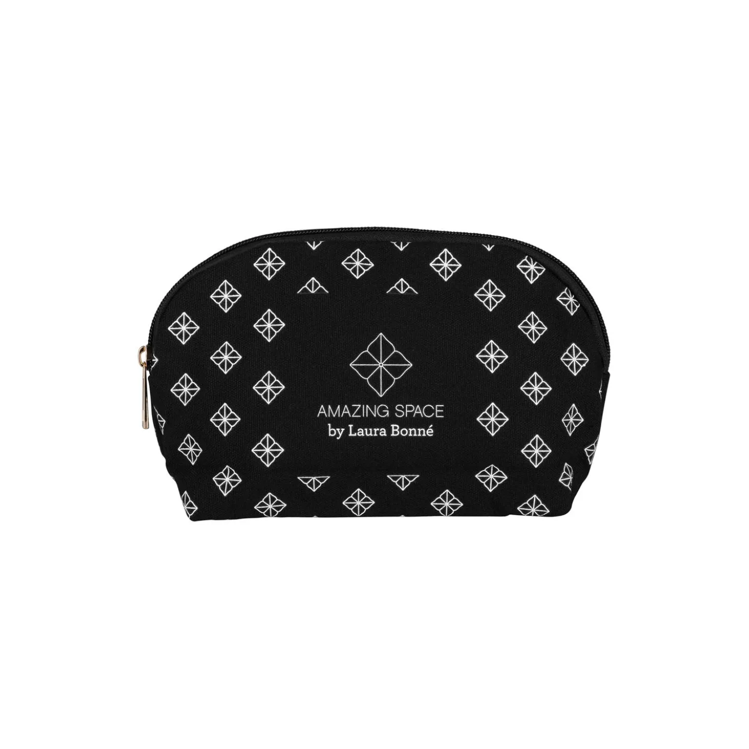 Fin og rummelig toilettaske fremstillet af økologisk bomuld i sort/hvidt monogram print. Tasken kan rumme alle dine personlige plejeprodukter og er praktisk lavet med en vandafvisende inderside og lynlås.