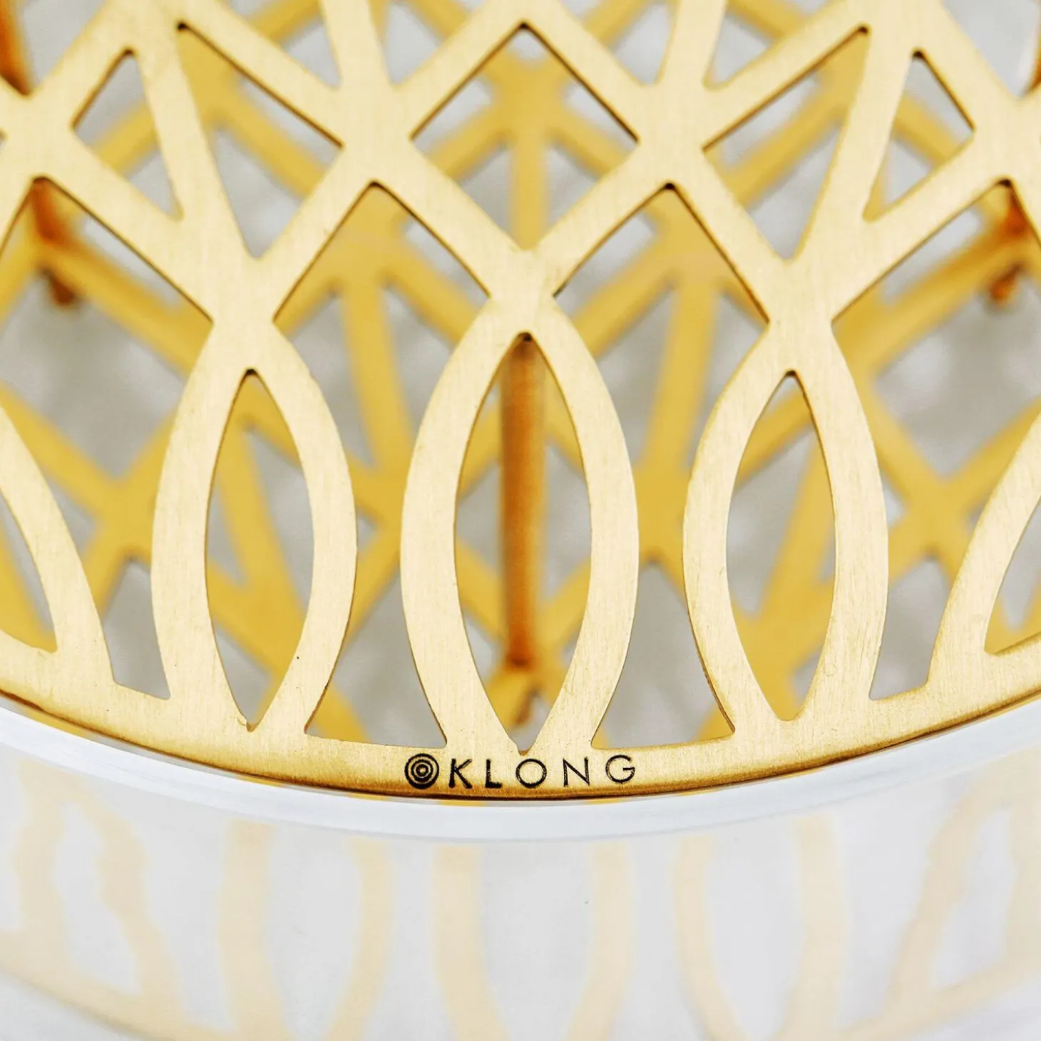 The idea of Äng is to give each individual flower support to stand by itself. The vase has a metal insert with a beautiful pattern, which makes it a piece of art. The structure lets the flowers fall into place and create a nice and organized flower decoration. The vase is mouth blown clear glass from Böhmen, Czech Republic and the insert is available in brass, black, blue/green and silver plated.