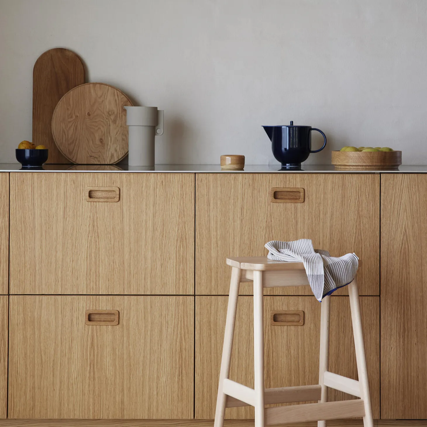 En fleksibel skammel, som opfylder alle behov og krav til form, funktionalitet, komfort og holdbarhed. Sædets to sider er vinklet fem grader mod hinanden. Denne unikke detalje giver overraskende god siddekomfort for et møbel med så minimalt et miljøaftryk og gør skamlen velegnet som ekstra siddeplads. Angle Standard Stool er designet til anvendelse i både private hjem og offentlige rum som et robust siddemøbel, der kan holde til lidt af hvert takket være det massive og gennemarbej dede sæde og de stærke ben. Angle Standard Stool – kollektionen kombinerer holdbare materialer, godt håndværk og god funktionalitet.