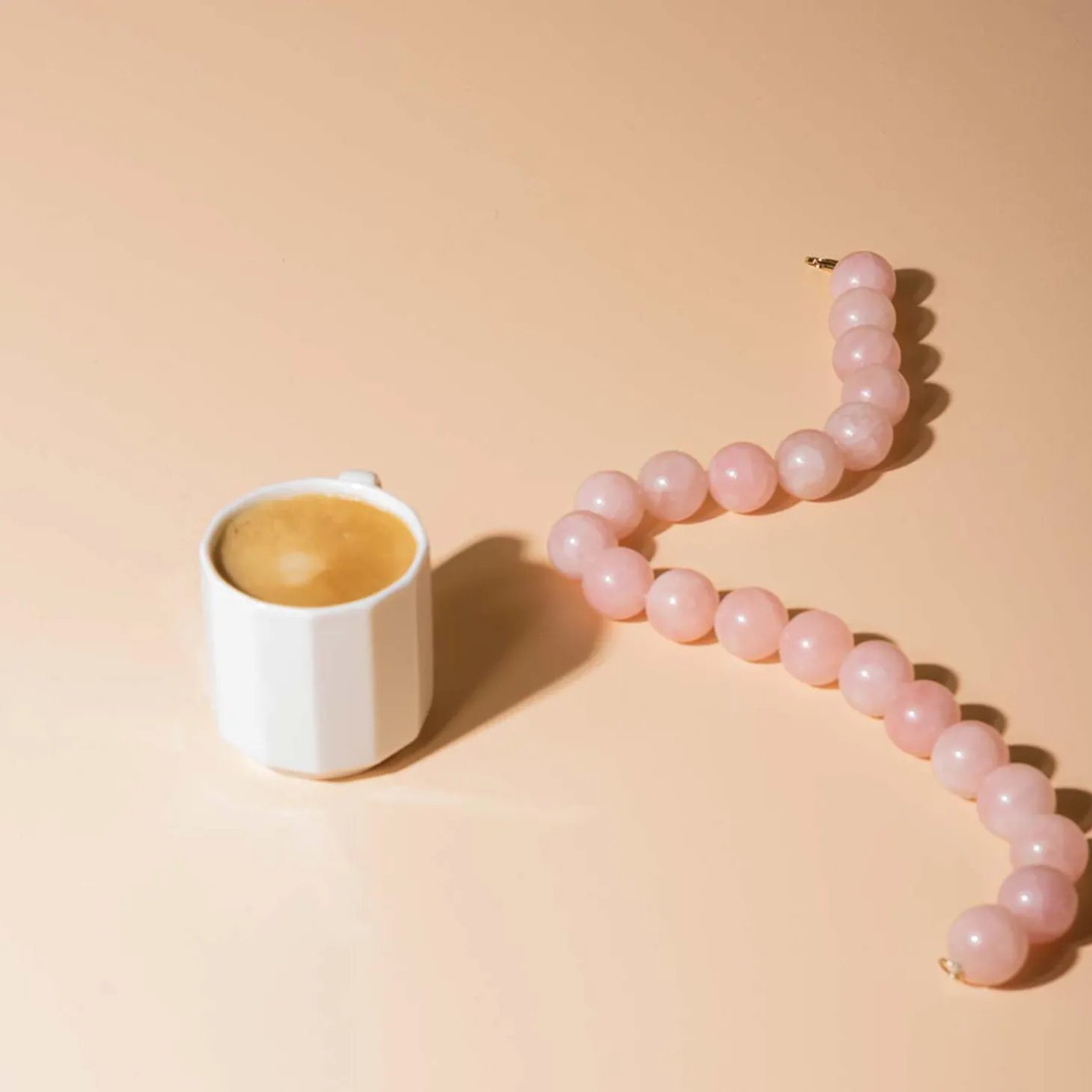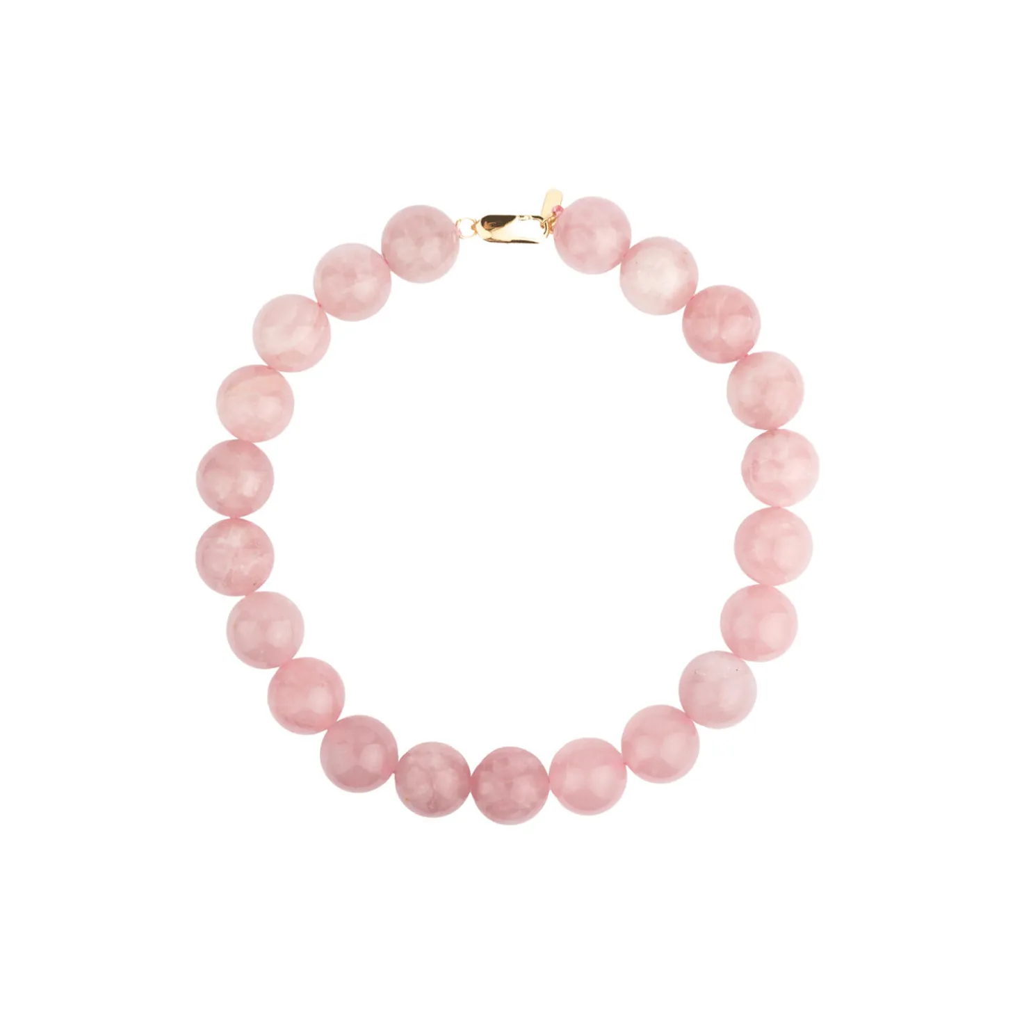 En perlekæde udover det sædvanlige! Arcade Fortune er en oversized fortolkning af den klassiske perlekæde – denne er sammensat af 19,5 mm kugleslebet rosakvarts. Da kæden er lavet af naturlig halvædelsten har den en god tyngde. Allergivenligt & nikkelfrit.