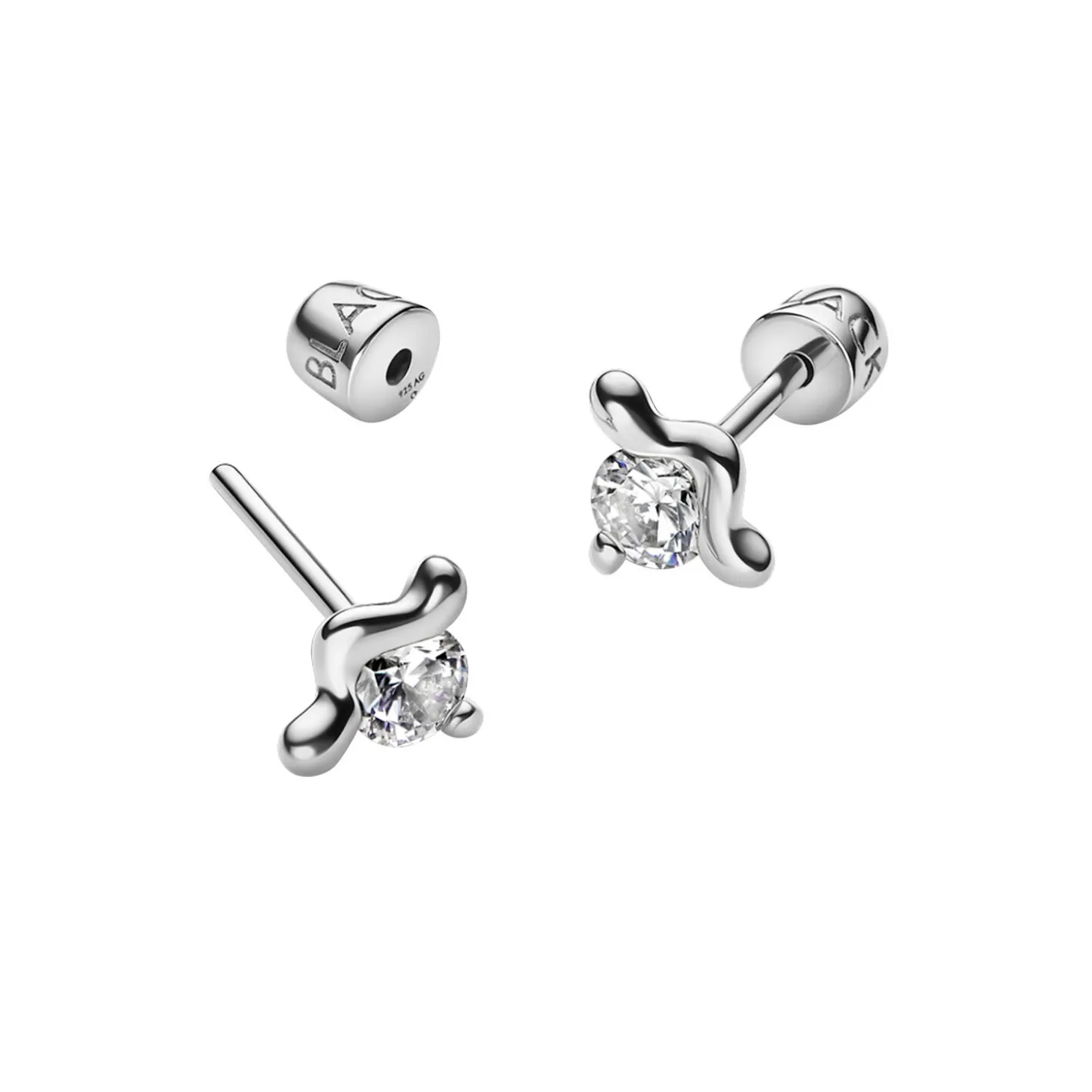 Designed in Denmark. Skilfully crafted in recycled sterling silver. Stud earring with white zirconia in a warped prong setting. Nickel free and hypoallergenic. Signature bullet back fastening for a luxurious fit.