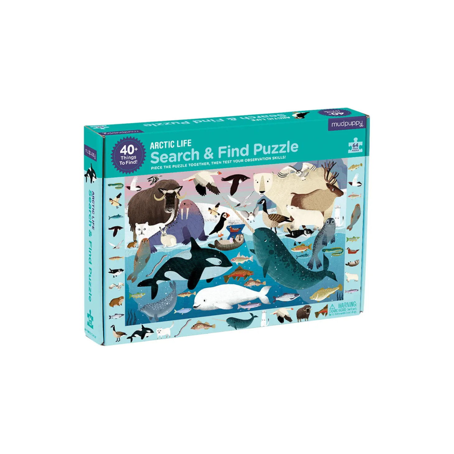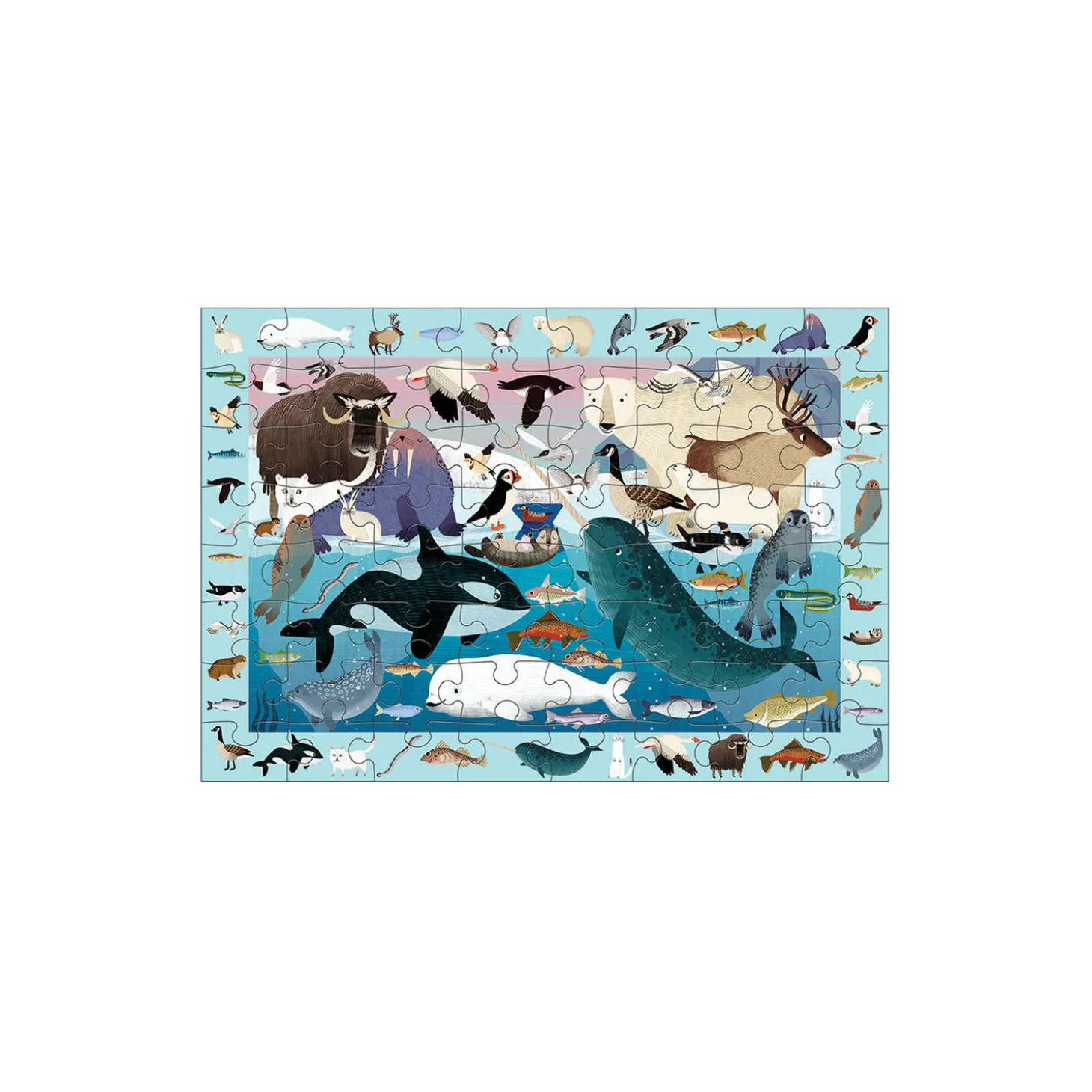 Arktisk dyreliv puslespil fra Mudpuppy. Mål: Samlet: 59×39 cm’. Antal brikker: 64 stk.