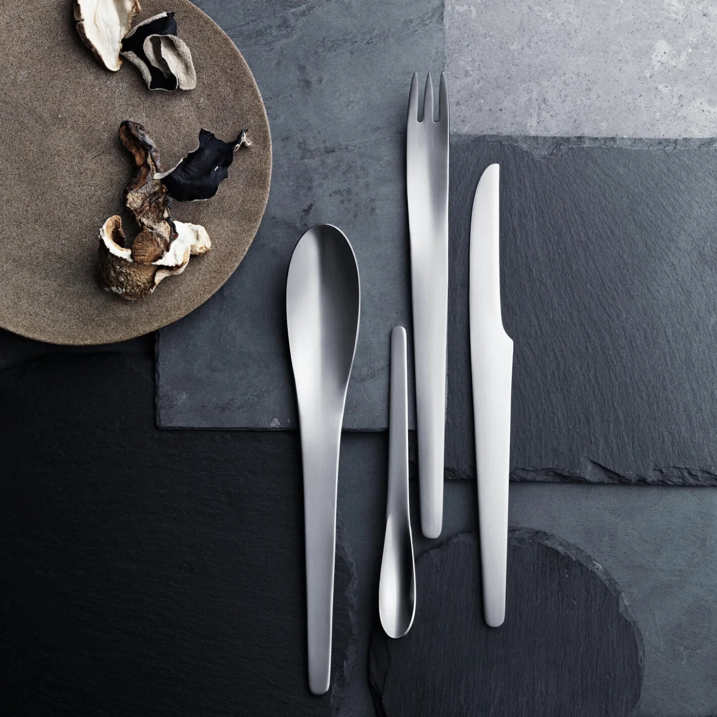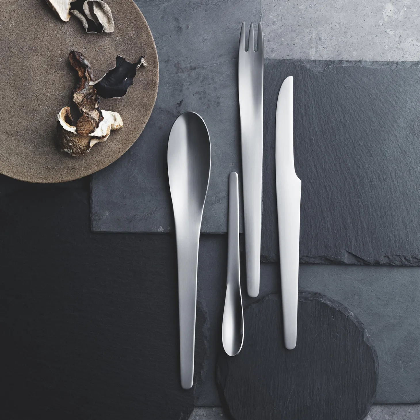 I 1957 designede Arne Jacobsen dette bestik til SAS Royal Hotel, og det ikoniske bestik er i dag en designklassiker. Bestikket fuldender din borddækning med skandinavisk minimalisme, og sættet består af fire dele, som du kan kombinere med resten af det elegante tilbehør fra Arne Jacobsen kollektionen.