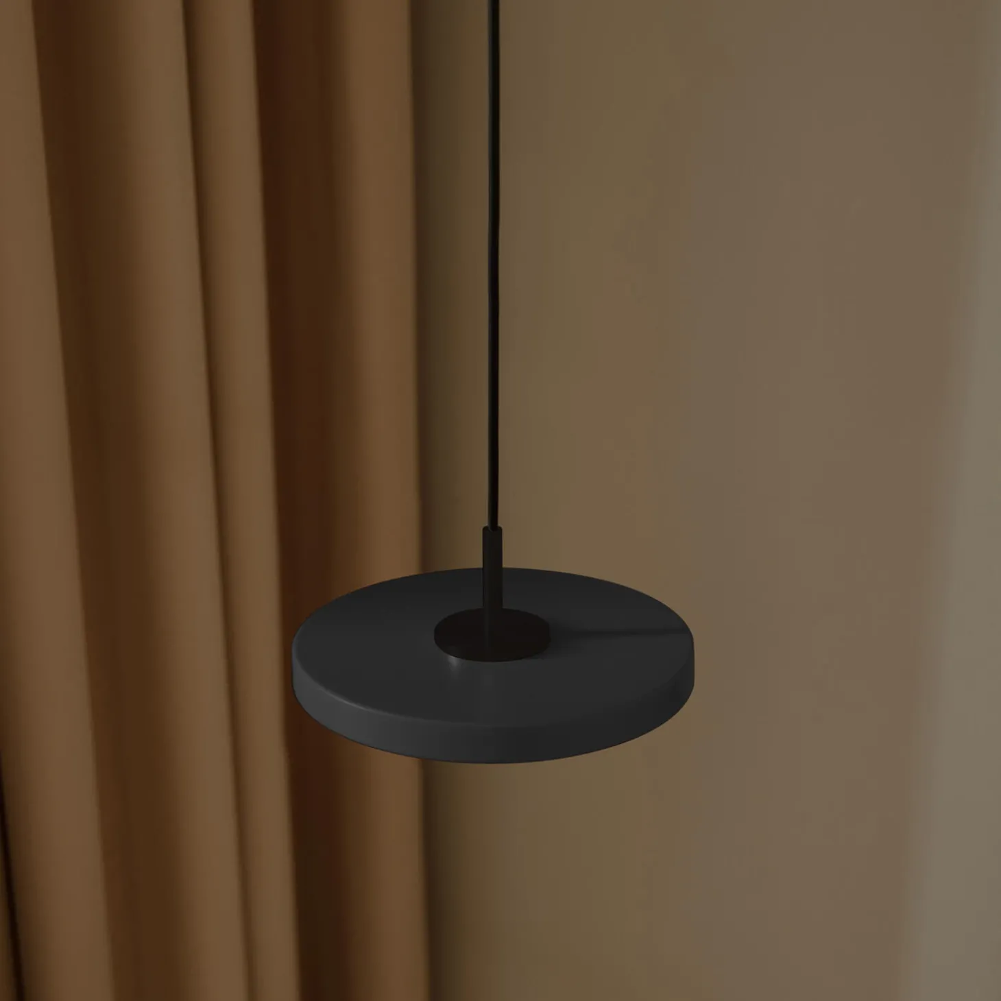 The Asteria Micro pendant lamp has a tight and sleek appearance born at the crossroads of design, technology, and craftsmanship. It incorporates a built-in LED technology with a shape so minimal that it will never go out of style. The LED panel has a white diffuser that will ensure a soft illumination in the surrounding space and its thin cord emphasize the attenuated minimalism of the design.Its mode of expression is simple, minimal and classic making it perfect for all settings. Hang Asteria micro by itself or side by side above the kitchen counter ensuring practical and proper light when cooking for your family and friends.For the smaller corners of the home that needs a little extra lighting, hang it in a cluster of three using the Asteria Micro Cluster 3 canopy. For a cluster look simply replace the included canopies with the new Asteria Micro Cluster 3 canopy. Either way it will light up your home in the most elegant manner.Asteria Micro is available in a variety of different colours and features a top in brass, steel and black, providing endless design possibilities that align with your personal style.