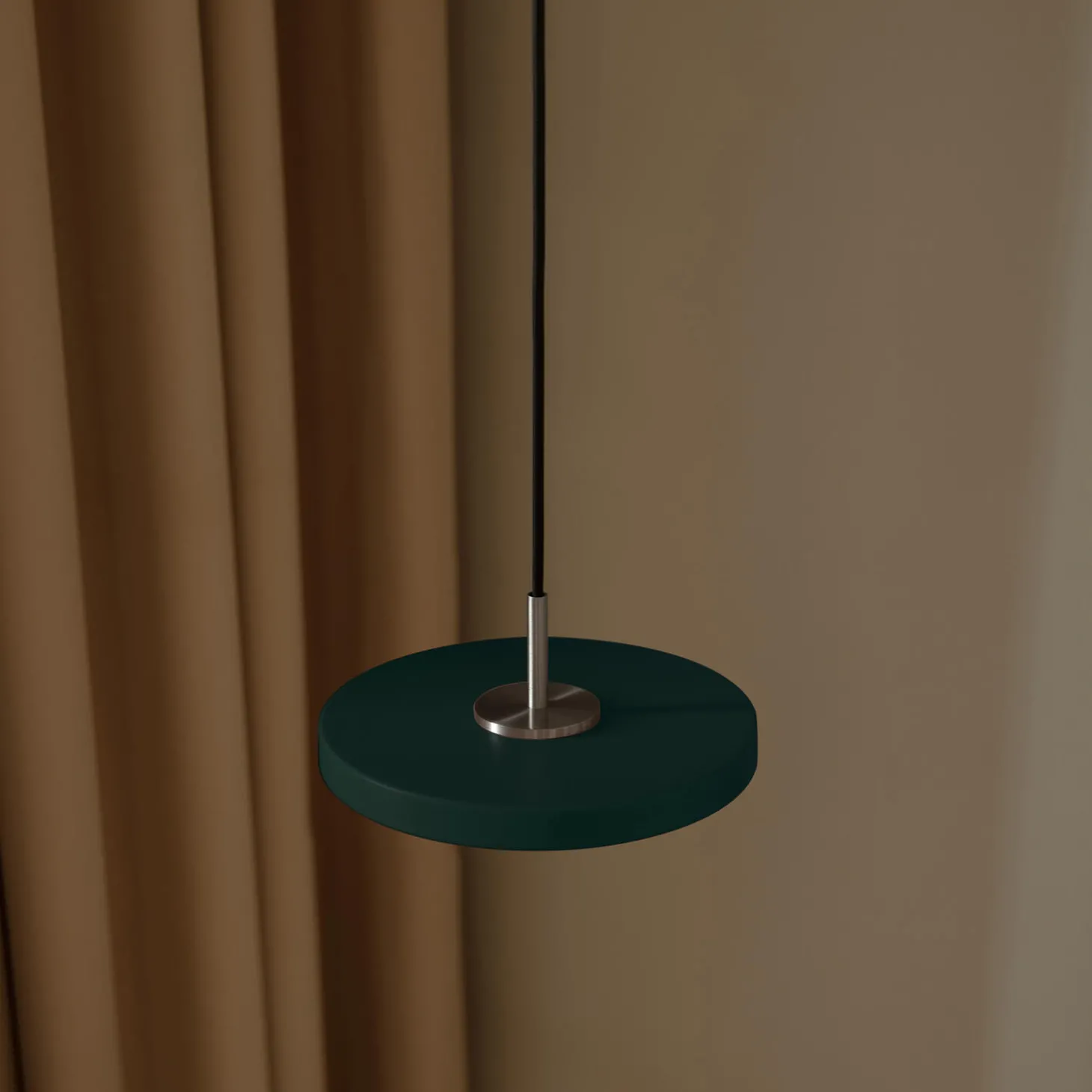 The Asteria Micro pendant lamp has a tight and sleek appearance born at the crossroads of design, technology, and craftsmanship. It incorporates a built-in LED technology with a shape so minimal that it will never go out of style. The LED panel has a white diffuser that will ensure a soft illumination in the surrounding space and its thin cord emphasize the attenuated minimalism of the design.Its mode of expression is simple, minimal and classic making it perfect for all settings. Hang Asteria micro by itself or side by side above the kitchen counter ensuring practical and proper light when cooking for your family and friends.For the smaller corners of the home that needs a little extra lighting, hang it in a cluster of three using the Asteria Micro Cluster 3 canopy. For a cluster look simply replace the included canopies with the new Asteria Micro Cluster 3 canopy. Either way it will light up your home in the most elegant manner.Asteria Micro is available in a variety of different colours and features a top in brass, steel and black, providing endless design possibilities that align with your personal style.