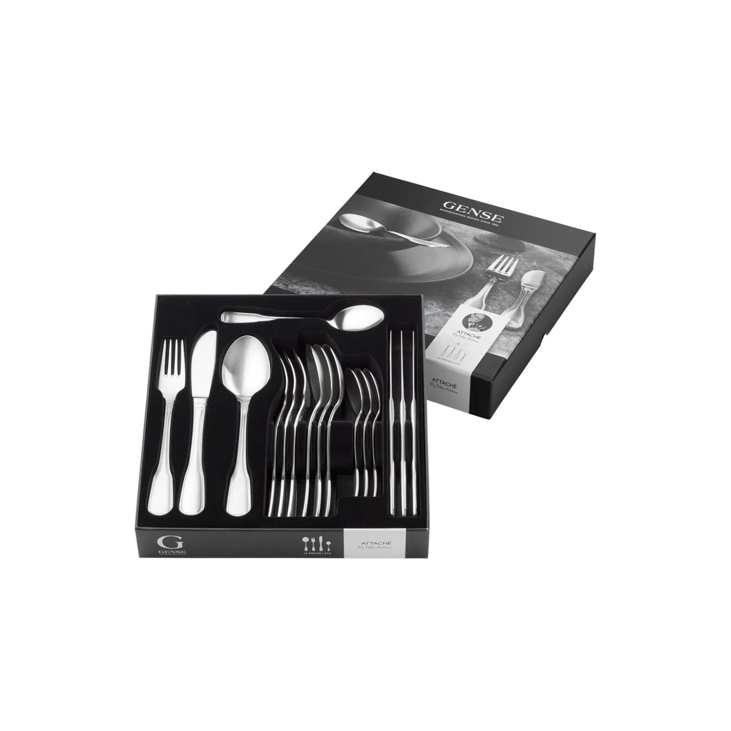 Gense Attaché står for et rent design inspireret af barokken. Bestikket har en traditionel stil skabt med en dobbeltrillet kant. Tåler opvaskemaskine.