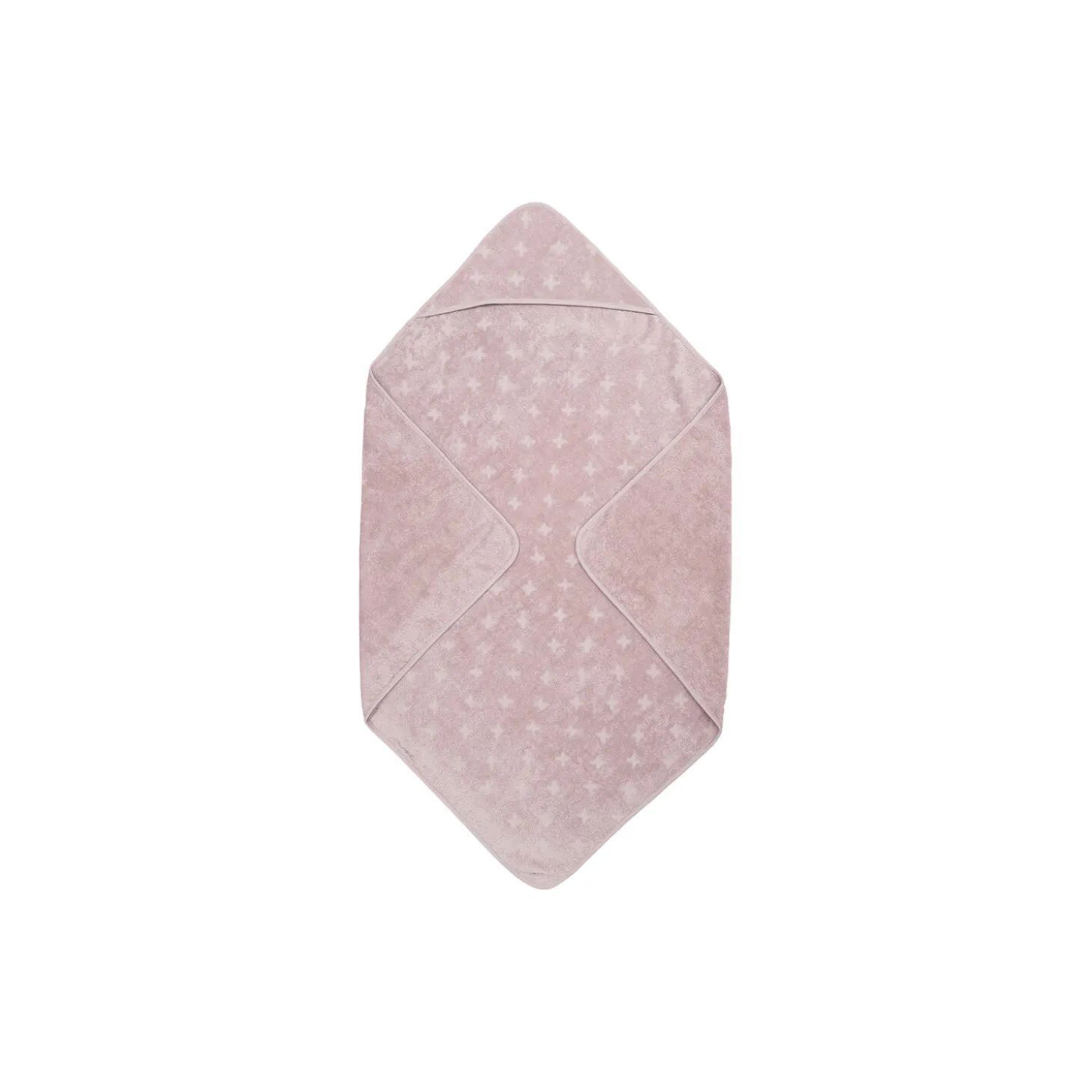 Babyhåndklæde med hætte og krydsmønster. Dejlig blødt og perfekt til de små da man kan pakke dem godt ind fra top til tå. 100 x 100 cm. Produktet er GOTS organic- certificeret, hvilket betyder at bomulden er certificeret økologisk, og at der i alle andre processer som farvning, strikning og syning er taget de strengeste hensyn til miljøet. GOTS er internationalt anerkendt som den førende standard for forarbejdning af tekstiler af økologisk bomuld. Derudover tages der også hensyn til arbejdsforholdene, hos dem der producerer tøjet. Økologisk bomuld 100%