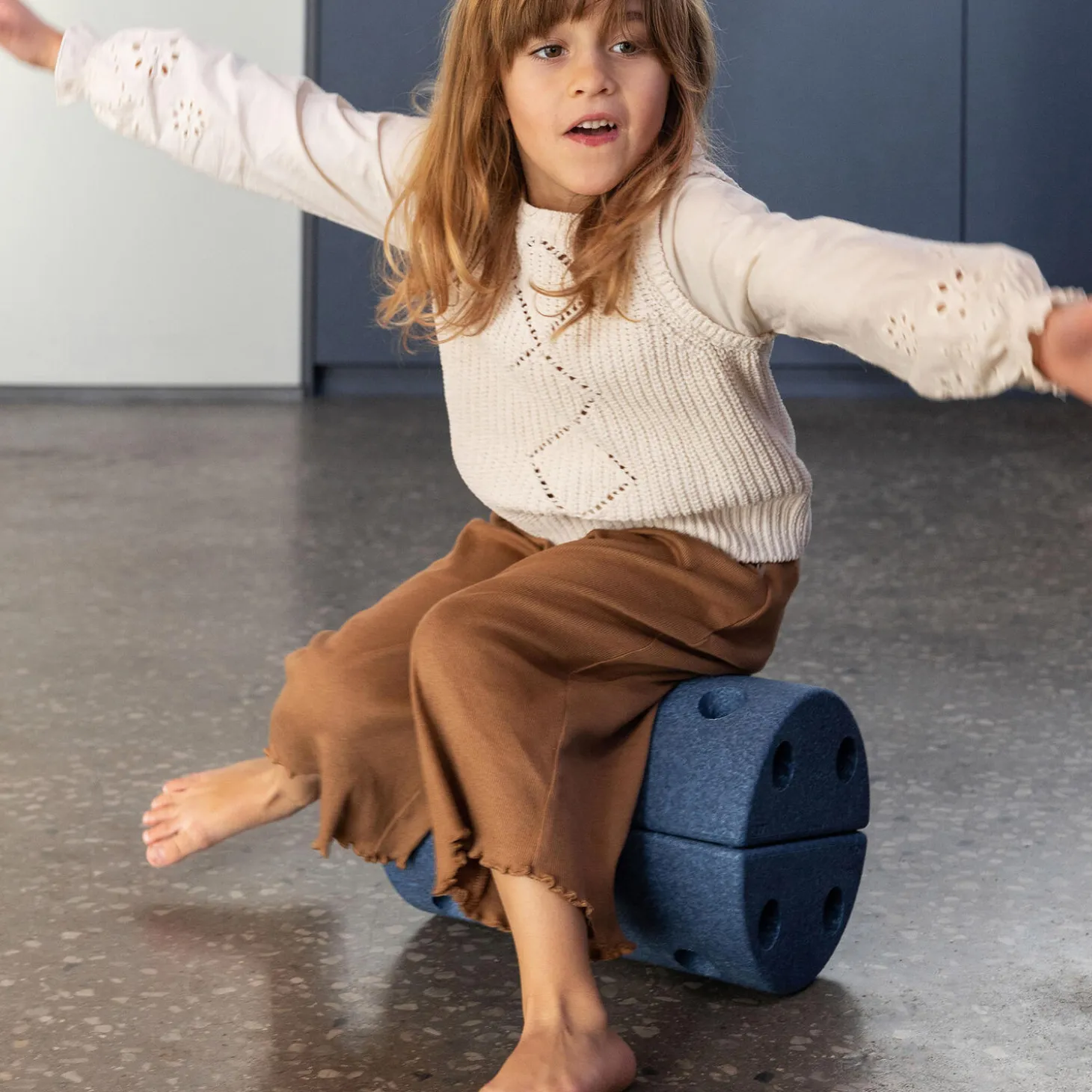 MODUs balancerulle er en fin lille 3-i-1. Brug rullen til at rulle hen over og øv din balance. Den kan også sammensættes på langs og det fungerer perfekt som en balancebane som en del af en længere forhindringsbane eller “jorden er giftig”. Når legen er slut, så er rullen god at sidde på og kan bygges som en fin skammel – eller et lille natbord? Balancerulle i EPP-skum og ABS-plast fra MODU.