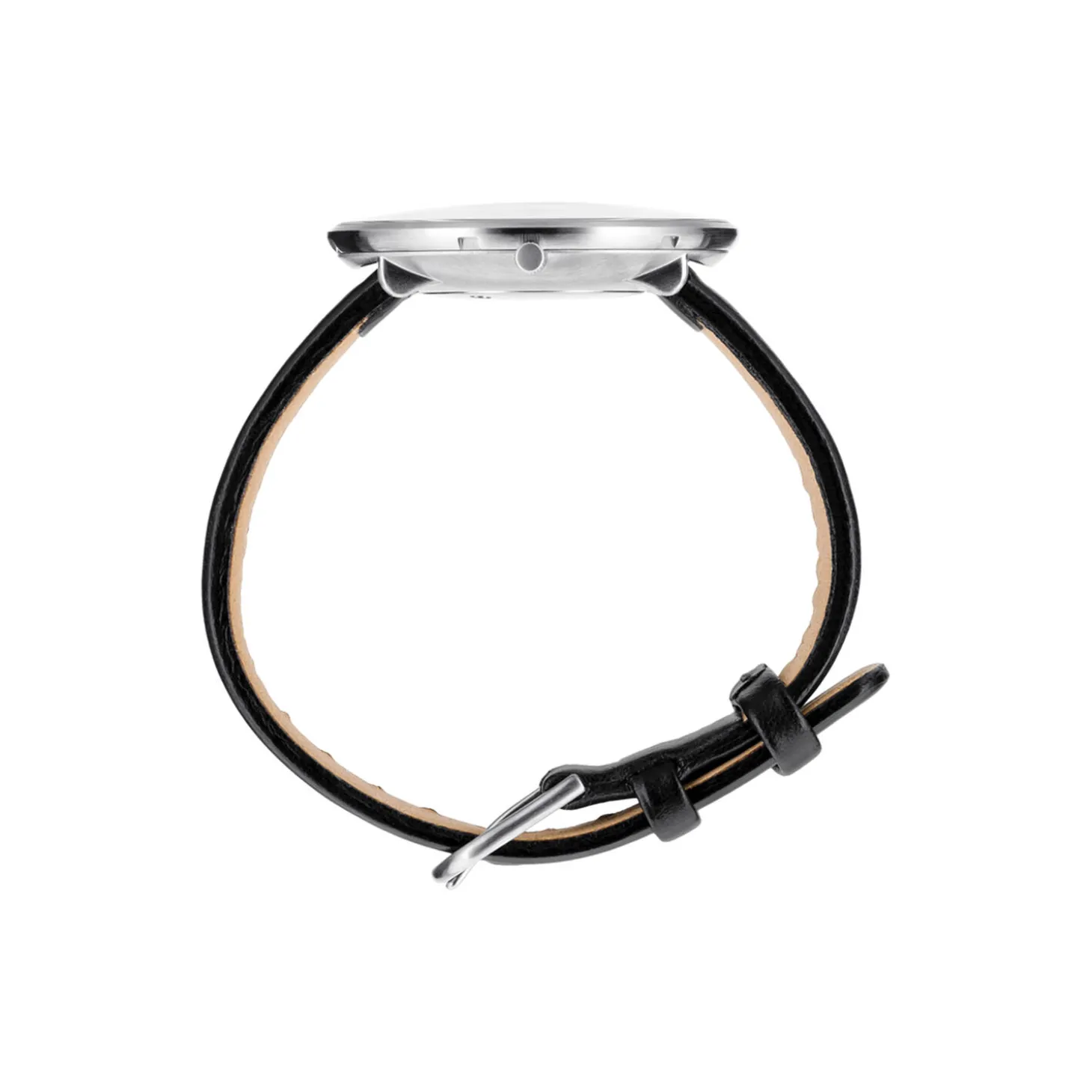 Urets diameter: 40 mm. Skivefarve: black. Urkassefarve: brushed steel. Remtype: leather strap. Rembredde: 20 mm. Remfarve: black. Urværk: MIYOTA GL26.