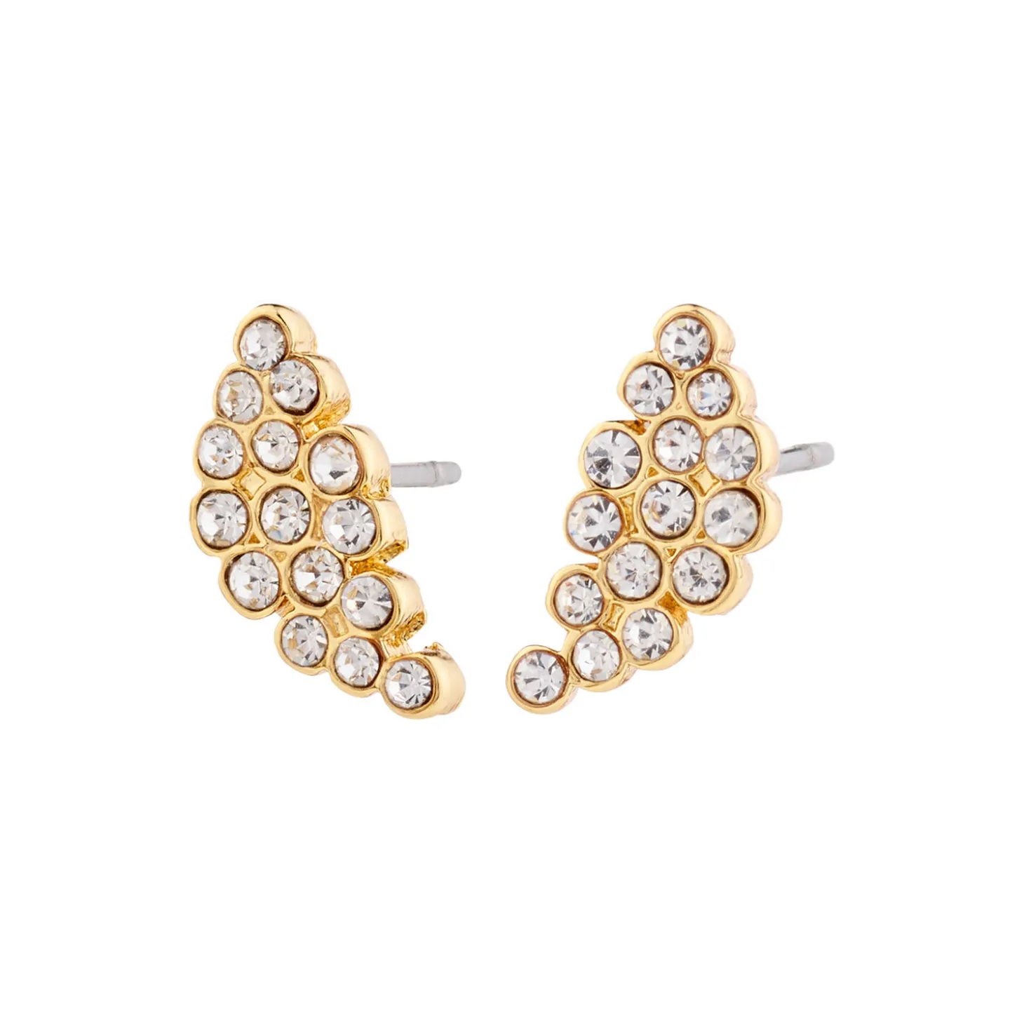 Dare to be less, med Pilgrims små krystal studs med klynger af funklende Preciosa krystaller i guldbelagt indfatning. Et sæt nye evergreens til din smykkesamling. Mix dem med flere øreringe op langs øret i et personalized ear curation look, eller bær dem solo for en helt stilren og klassisk styling. Øreringene er lavet af 94% genanvendt materiale, med omtanke for miljøet.