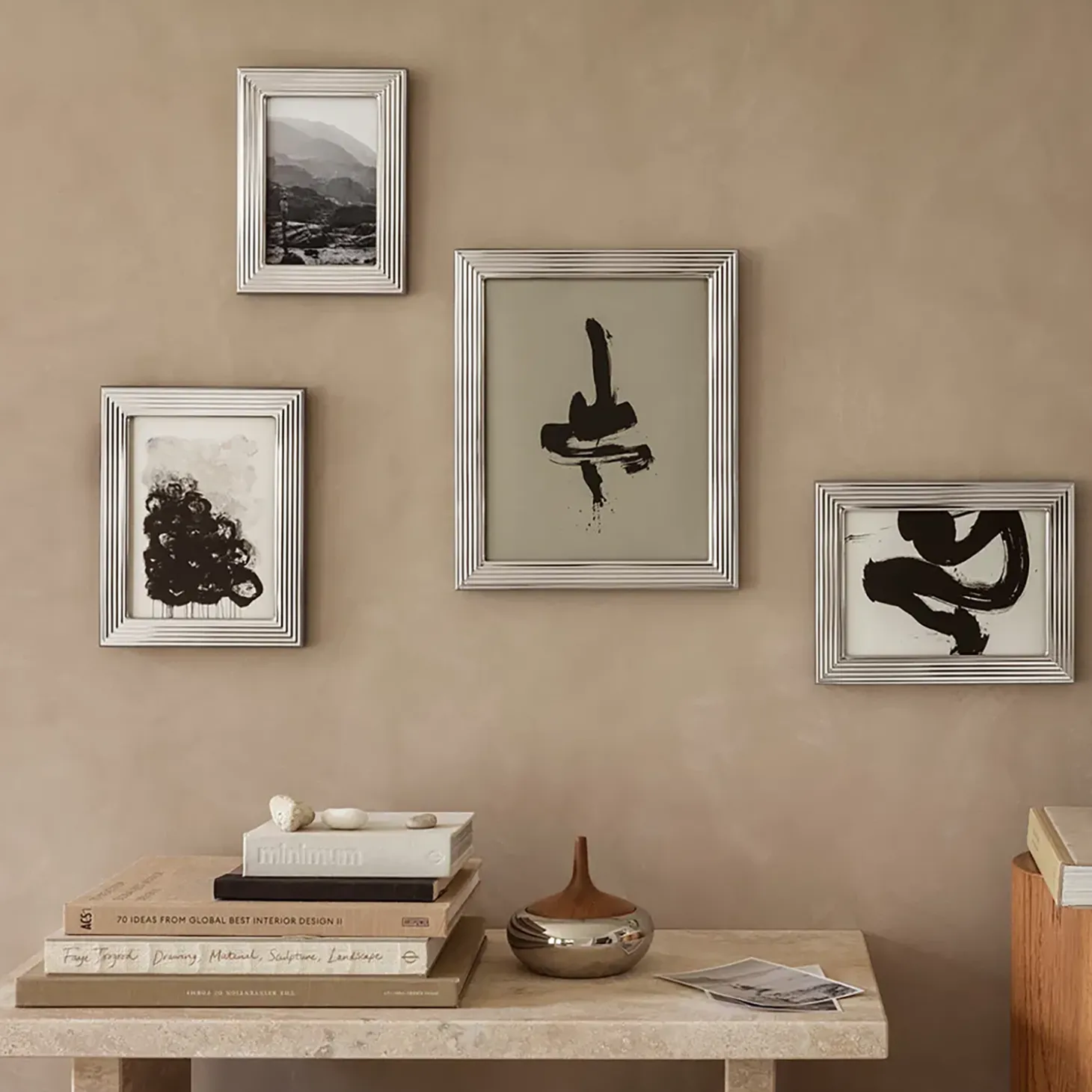 Det ikoniske, riflede design, som kendetegner Bernadotte kollektionen, får denne flotte billedramme til at skille sig ud. Rammen er fremstillet i rustfrit stål og glas, og med sit elegante, sofistikerede design er den ideel til mindeværdige billeder. Et nyt magnetisk system samler rammen, og den kan både stå lodret og vandret eller nemt monteres på væggen.