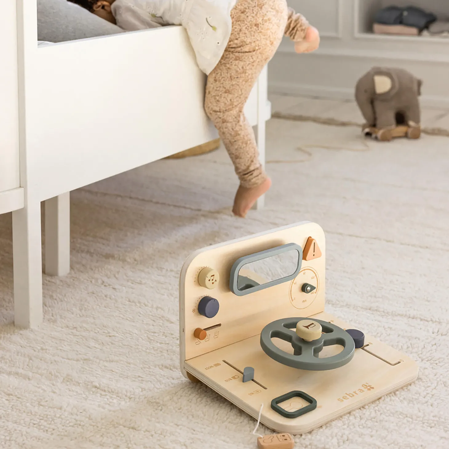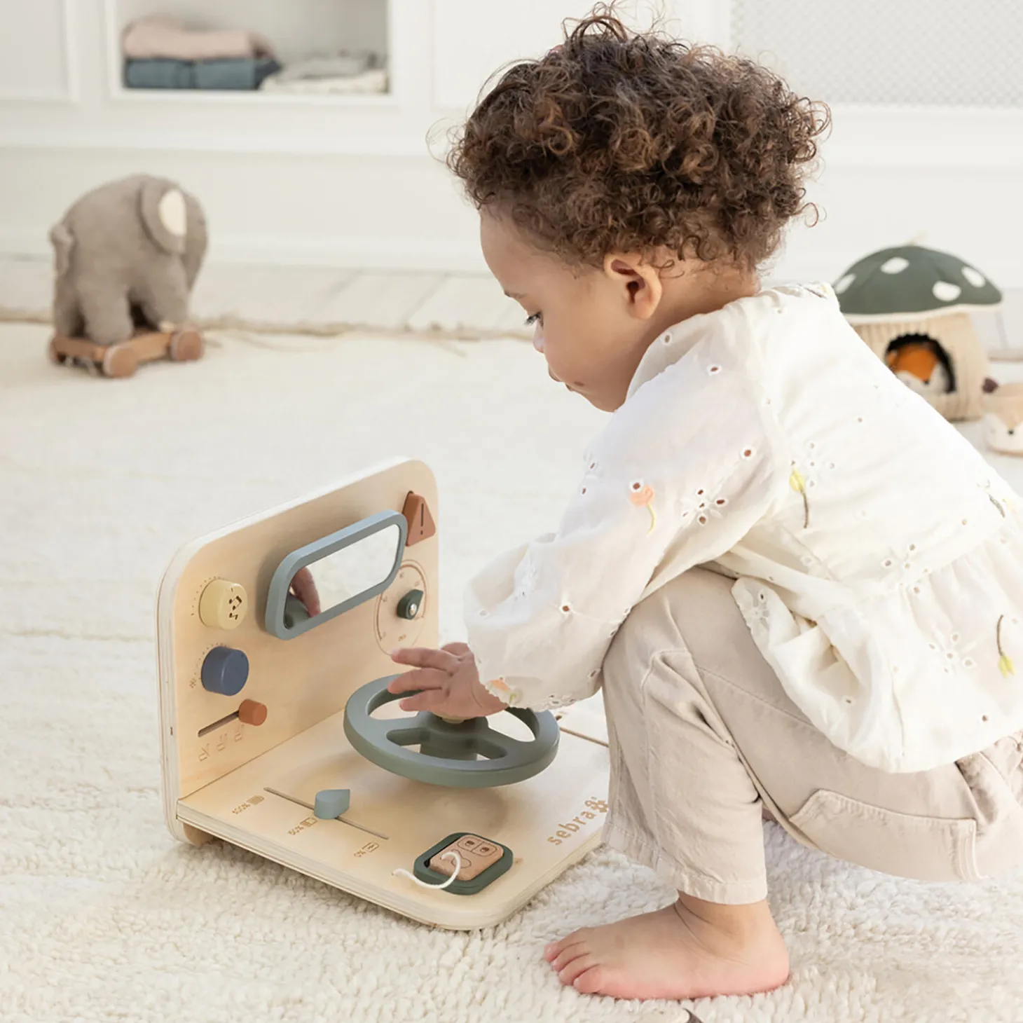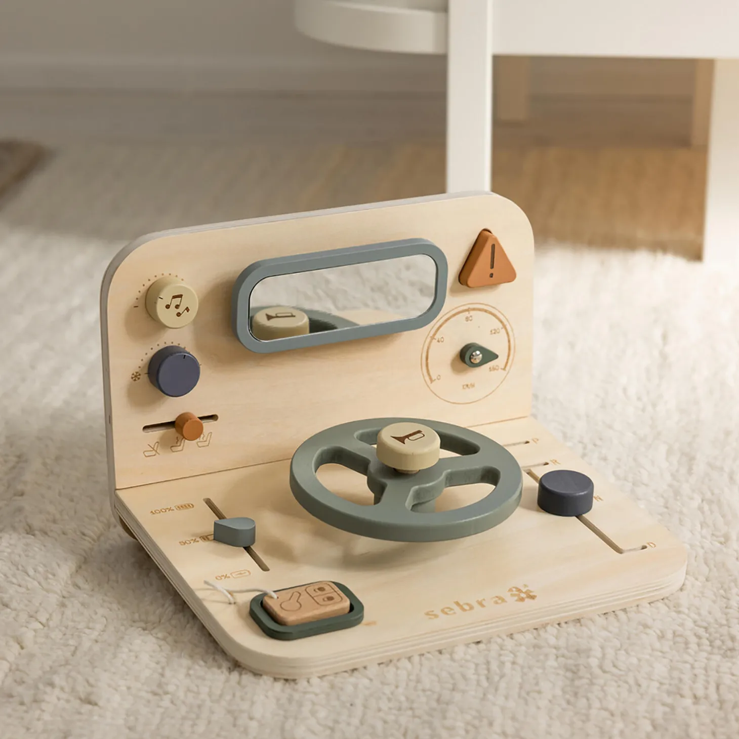 Giv dit barn en verden af sjov og læring med den flotte aktivitetstavle i certificeret træ, der er perfekt til små bilentusiaster.