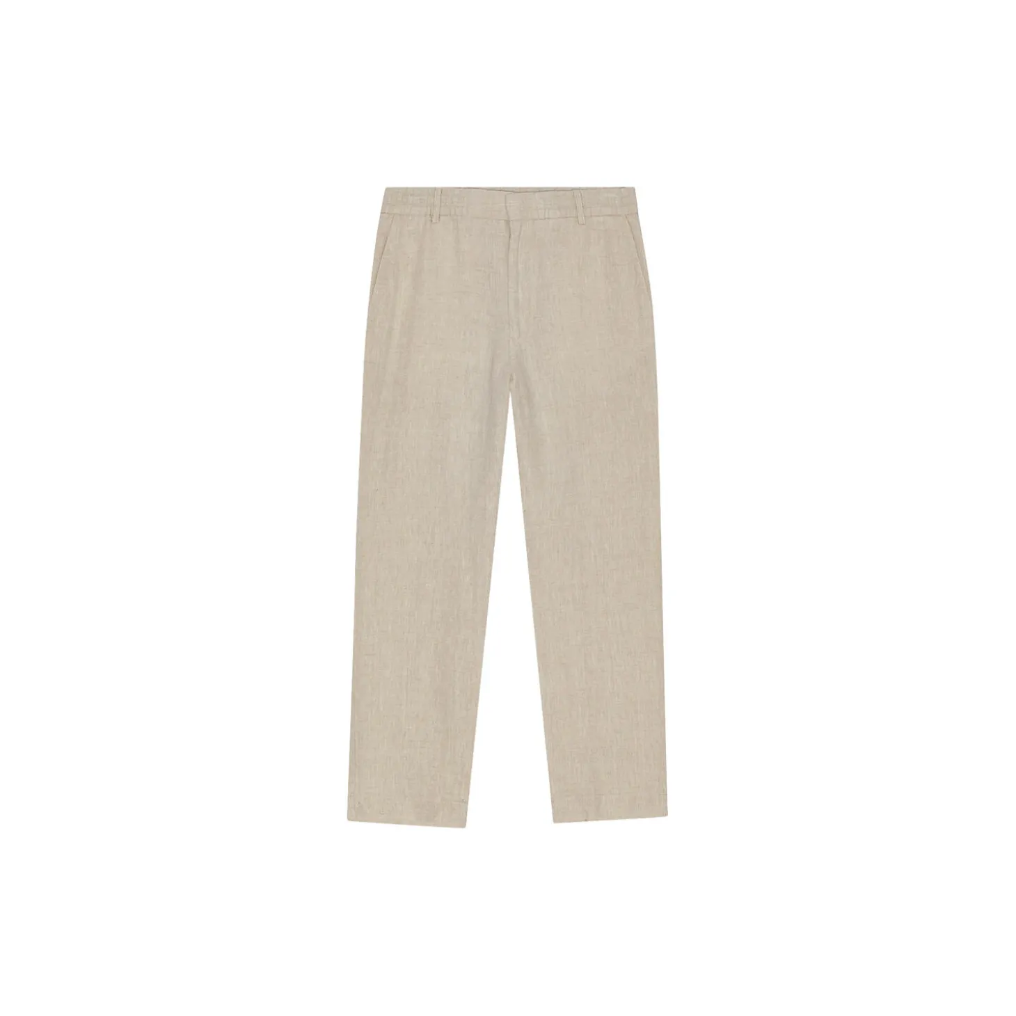 Casual dress trousers made in European linen with tapered legs, an elasticised waistband with a hidden drawstring closure, and finished with a neat press fold.