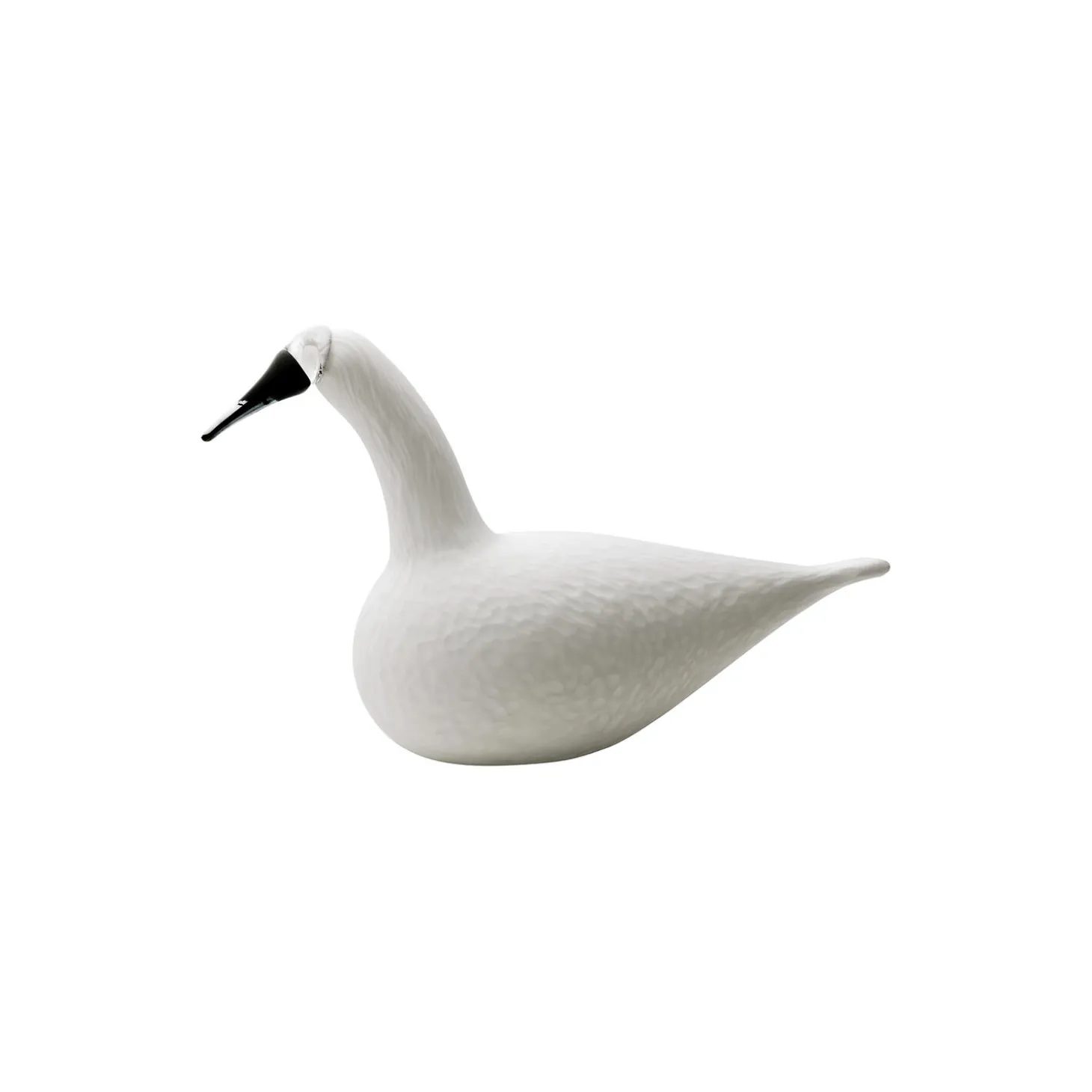 Birds by Toikka Sangsvane i mundblæst glas fra Iittala. Farve: hvid/sort. Mål: 21×33 cm. Design: Oiva Toikka.