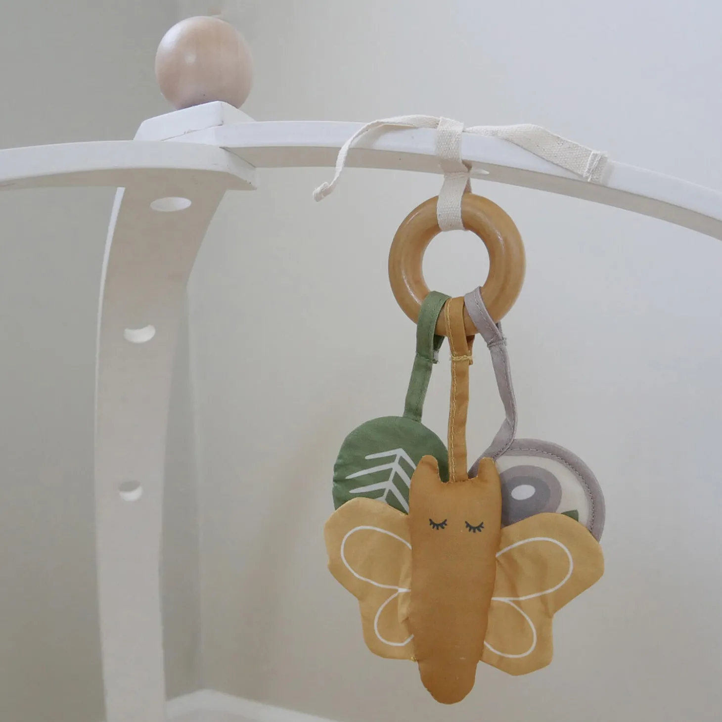Birk sommerfugl aktivitetslegetøj i økologisk bomuld med polyesterfyld fra FRANCK & FISCHER. Farve: yellow. Mål: H: 18 x B: 10 x D: 4 cm.