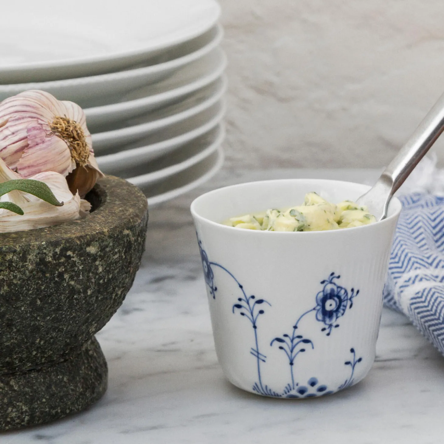 Blå Elements multikop i porcelæn fra Royal Copenhagen. Dette sæt af to, håndmalede multikopper er en sikker favorit. Koppernes klassiske elegance er skabt af et geometrisk felt af rifler og subtile, blåmalede fiskeskælsdekorationer. De alsidige kopper er håndmalede i det legende Blå Elements-mønster, som også er vokset frem på koppernes inderside. Kopperne på 25 cl kan bruges til alt fra varme og kolde drikke til snacks, krydderier og småting.