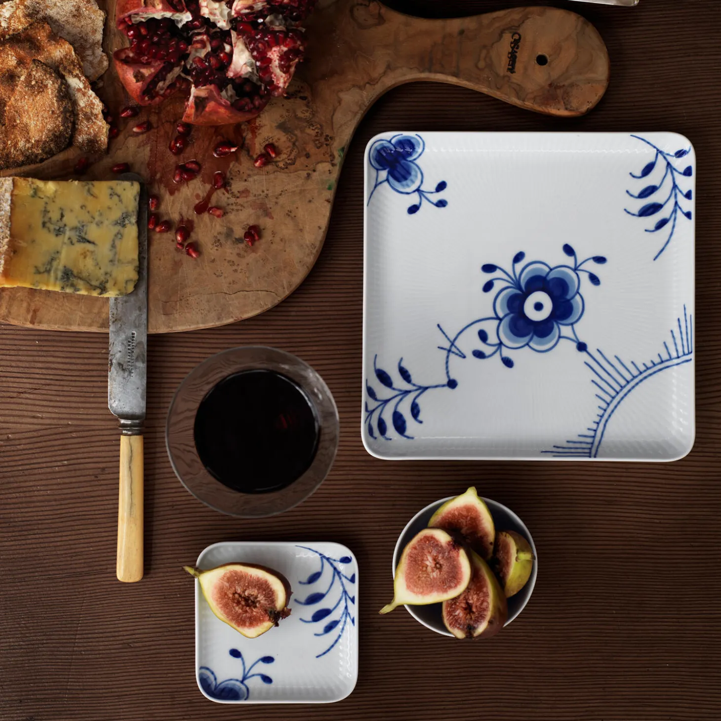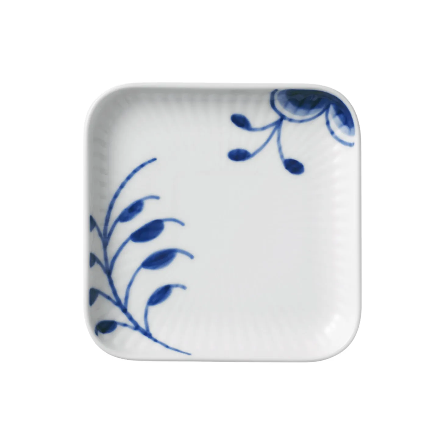 Blå Mega Riflet firkantet asiet i porcelæn fra Royal Copenhagen. Denne lille Firkantet Asiet på 9 cm er håndmalet i Blå Mega Riflet, der er skabt af tilpassede sektioner fra det klassiske Musselmalet Riflet-stel. Brug tallerkenen som en sidetallerken til brød og andet tilbehør eller lad den være et dekorativt element i hjemmet.