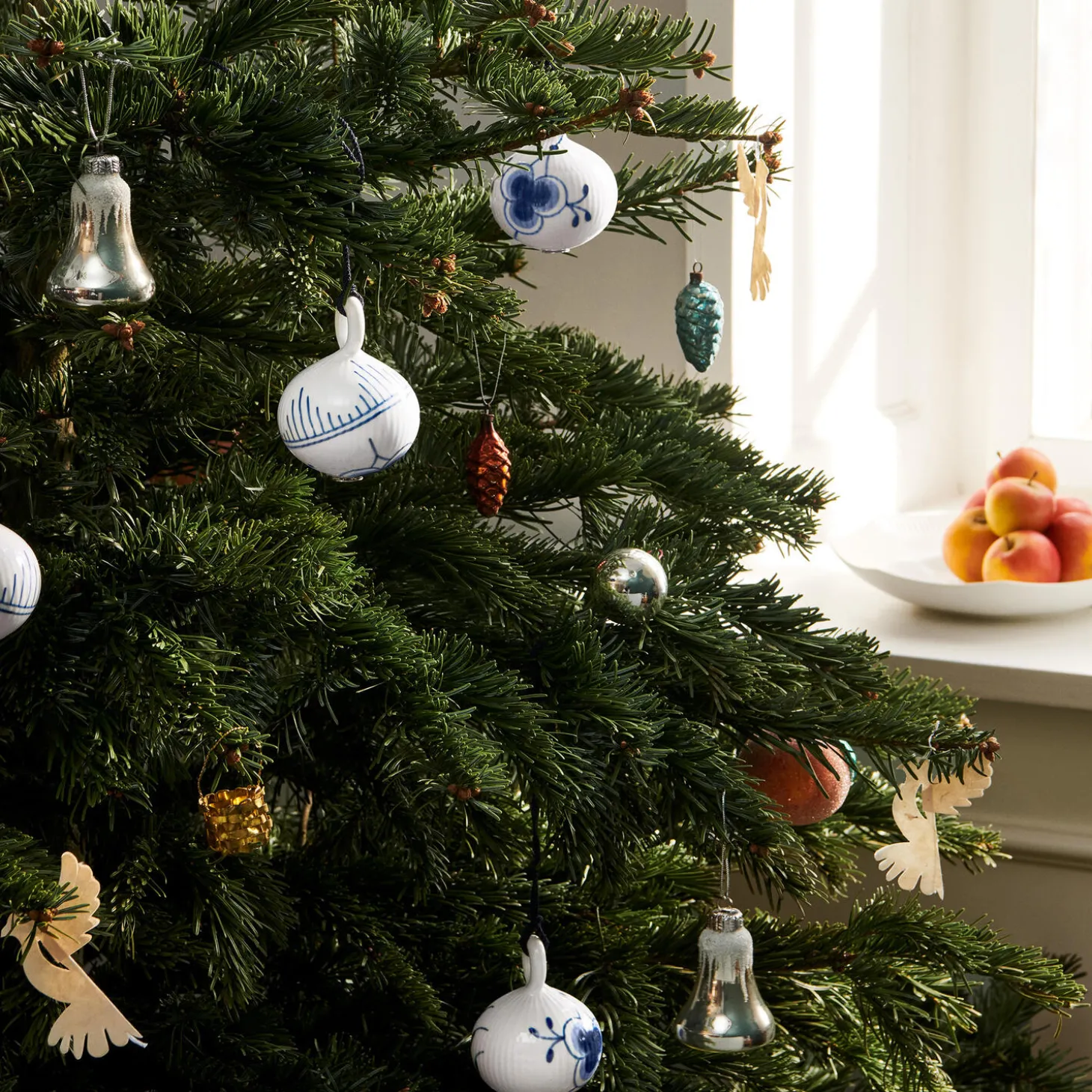Blå Mega Riflet julekugler er et perfekt samlerobjekt. Kuglerne vil se smukke ud på træet blandet med hvid, blå eller gyldne ornamenter. Eller måske hænge i vinduerne i skæret af levende lys. Kuglerne kan findes i to versioner af Blå Mega mønsteret designet af Karen Kjældgård-Larsen.
