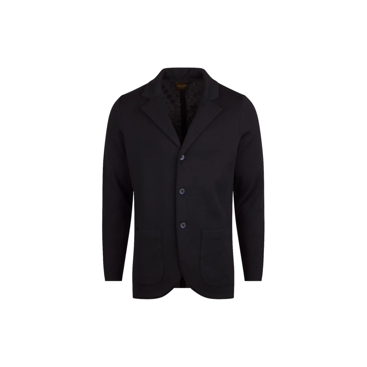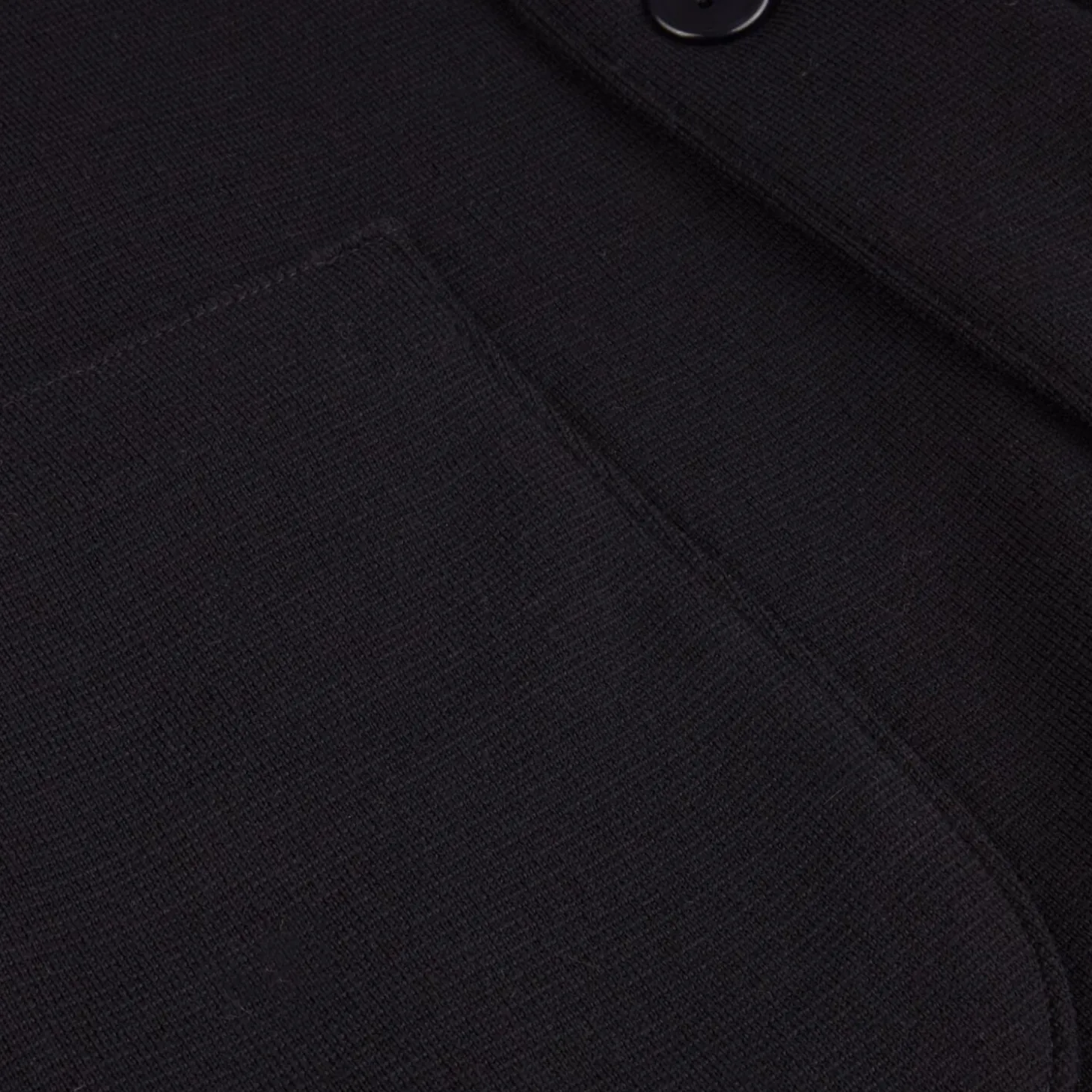 Denne strikkede blazer er fremstillet i merinould og har revers og perlemorsknapper.