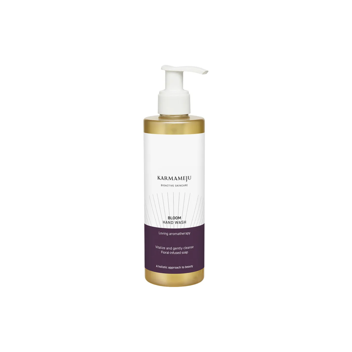 BLOOM håndsæbe er en aromaterapeutisk håndsæbe med plejende økologisk aloe vera og opløftende aromaterapi med blomster- og trænoter.