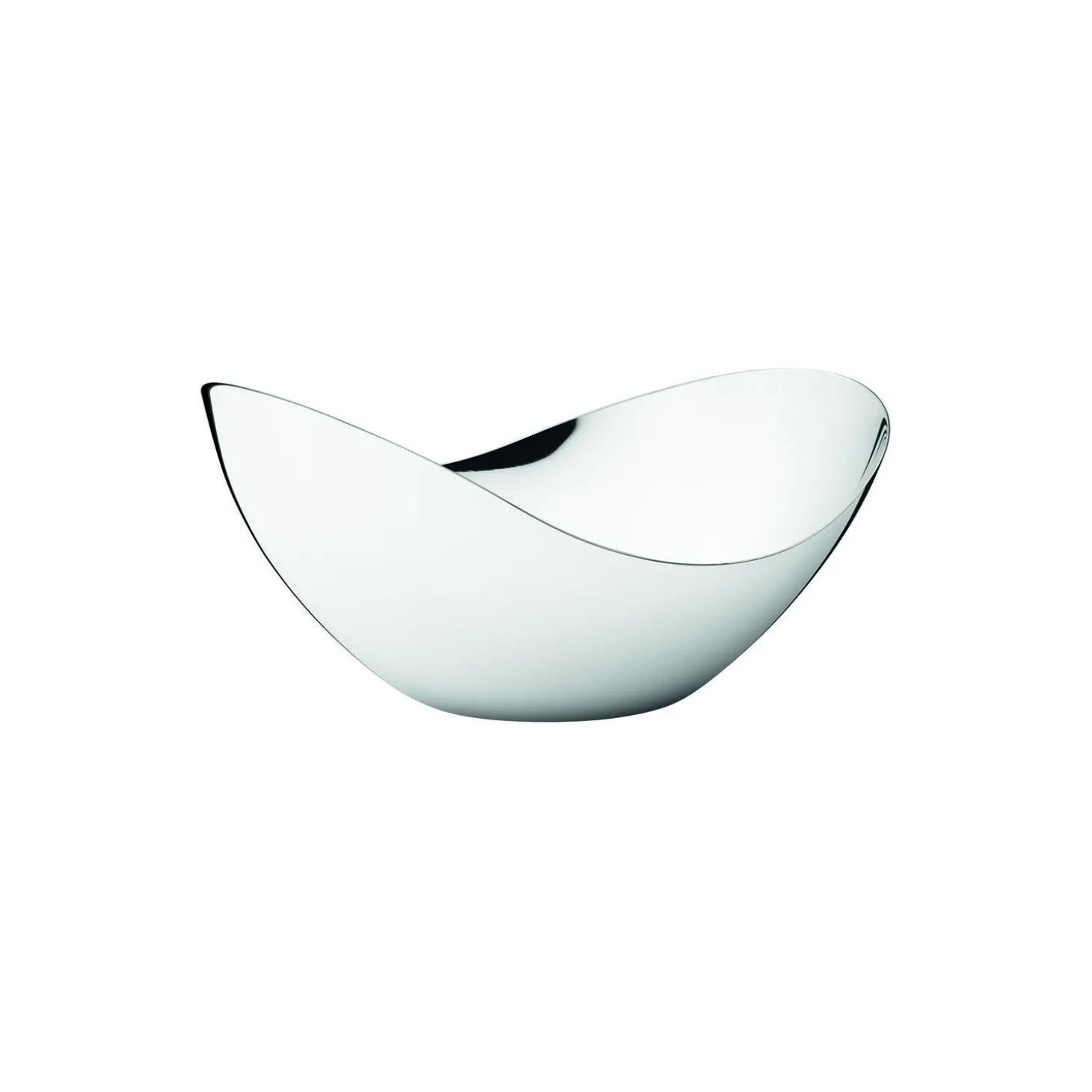 Bloom høj skål i blankt rustfrit stål fra Georg Jensen. Farve: stål. Mål: H: 11,2 x B: 14 x L: 22 cm. Størrelse: mellem. Design: Helle Damkjær.