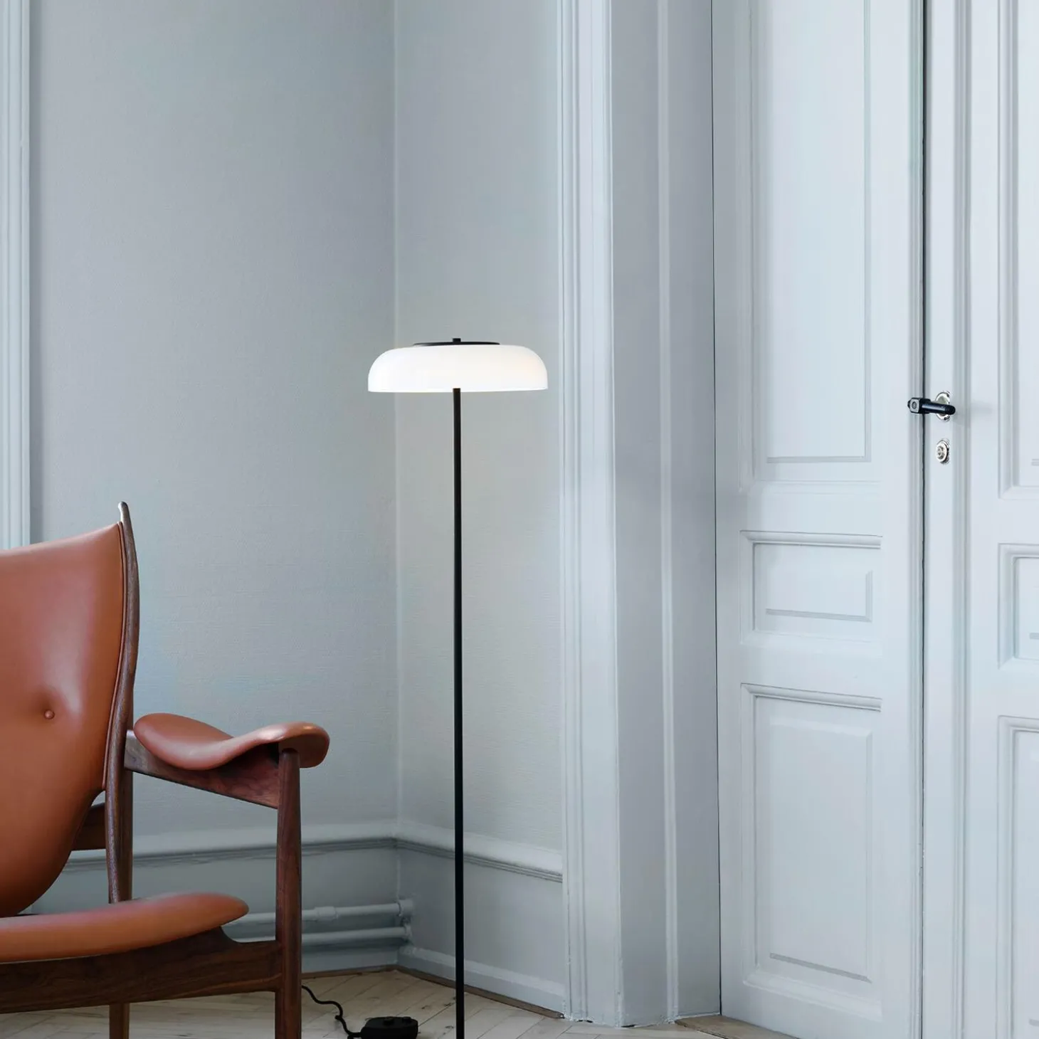 Blossi Floor er en nytænkende og alligevel klassisk gulvlampe udført med et mundblæst opalglas og en sort metallakering. Farvekombinationen fremhæver formgivningen på lampen samt det tidløse skandinaviske udtryk. Den sorte overflade er fremstillet af en unik lak, som er særlig modstandsdygtig mod snavs og har et fløjlsblødt udtryk. Blossi kollektionen er nu produceret i en low voltage version med et let udskifteligt LED-kort, der giver flicker-frit lys og opfylder de nyeste EU-restriktioner. Det specialudviklede LED-kort er placeret i lampen og lyset reflekteres blødt i glasset. Ledning med lysdæmper og EU + UK stik.