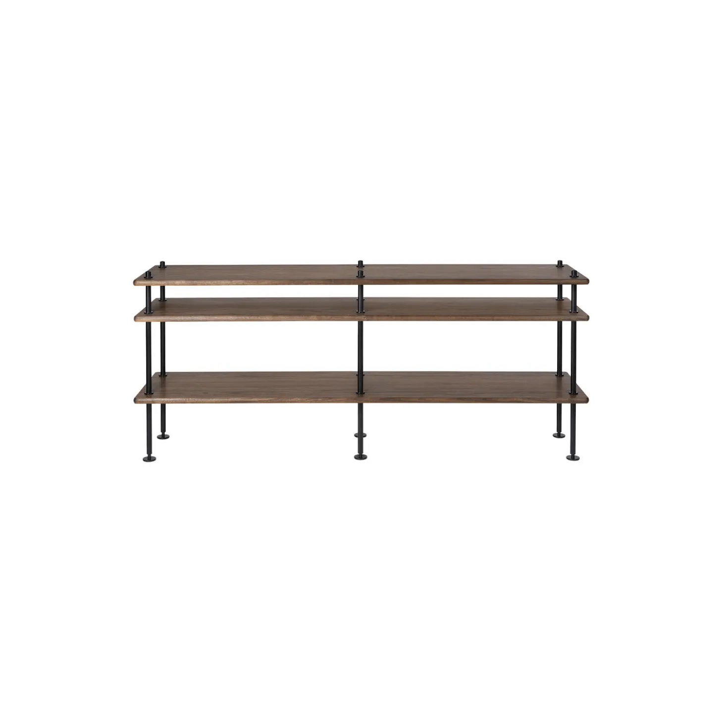 BM0253-4 hyldesystem i olieret valnøddetræsfinér og pulverlakeret stål fra Carl Hansen & Søn. Farve: olieret valnød/sort. Mål: H: 60 x B: 150 x D: 37 cm. Design: Børge Mogensen. Konfigurationen består af: 1 x BM0253 ben 20 cm (6 stk.), 3 x BM0253 hylder 37×150 cm, 1 x BM0253 stangsæt 25 cm (6 stk.) og 1 x BM0253 stangsæt 10 cm (6 stk.)