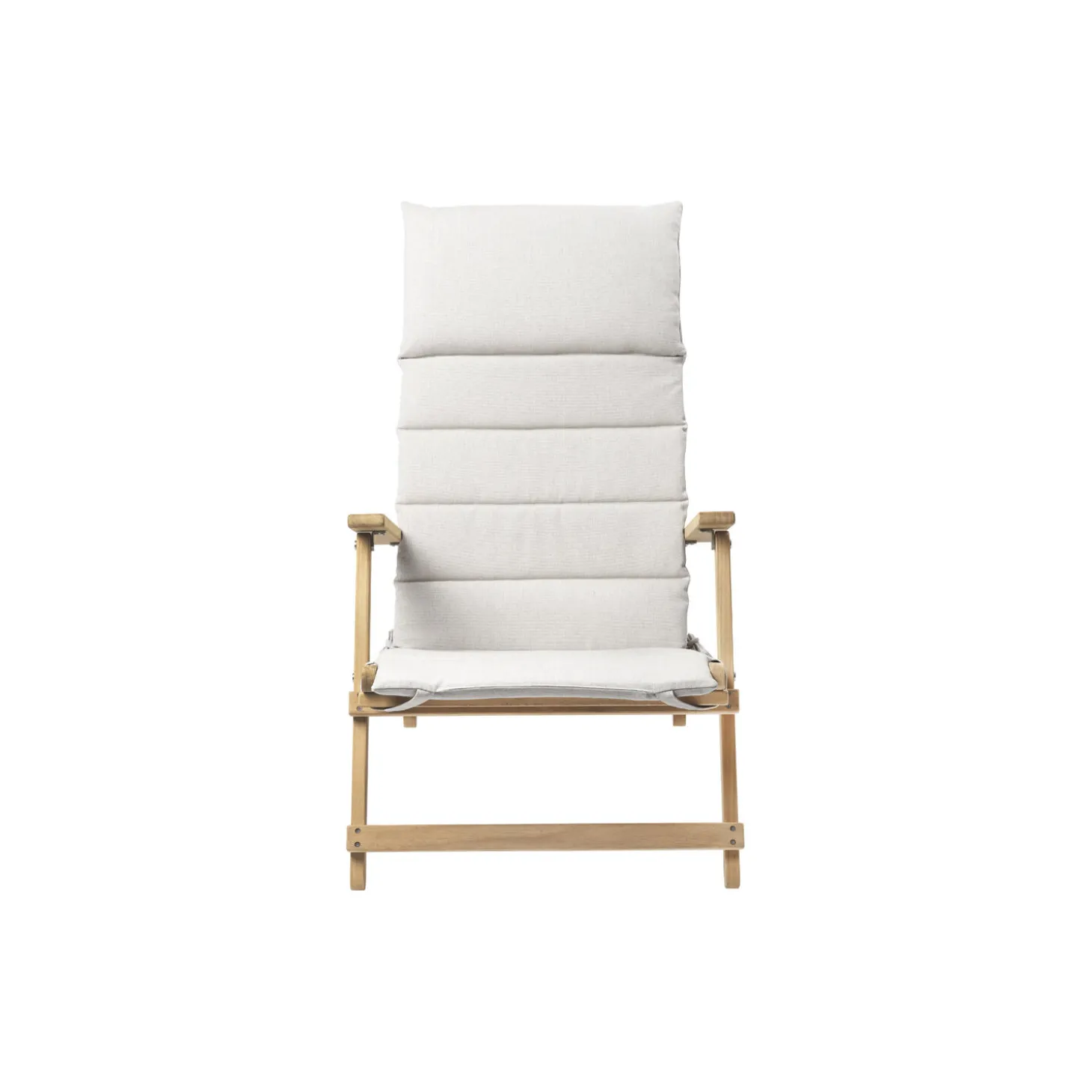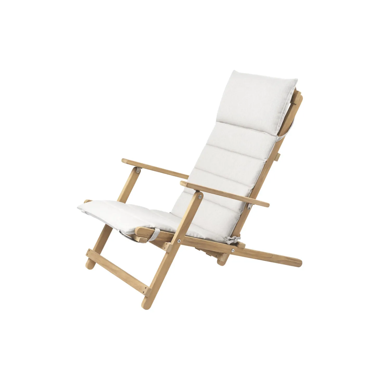 BM5568 dækstol inkl. hynde i ubehandlet teak med hynde i Heritage Papyrus 18006 Sunbrella® tekstil fra Carl Hansen & Søn. FSC®-certificeret. Farve: ubehandlet teak/beige. Mål: H: 89 x B: 60,5 x D: 93,5 cm. Siddehøjde: 37 cm. Design: Børge Mogensen.