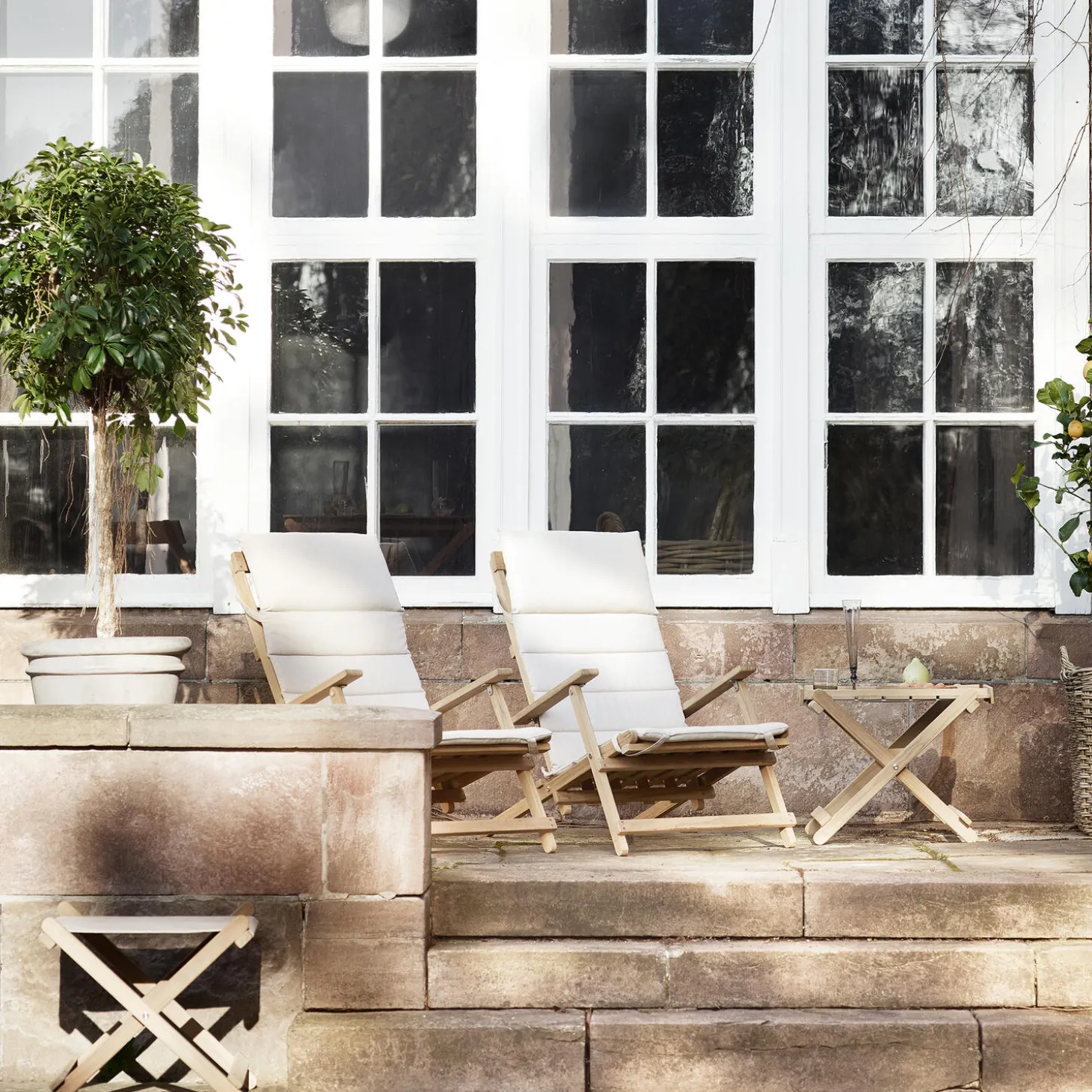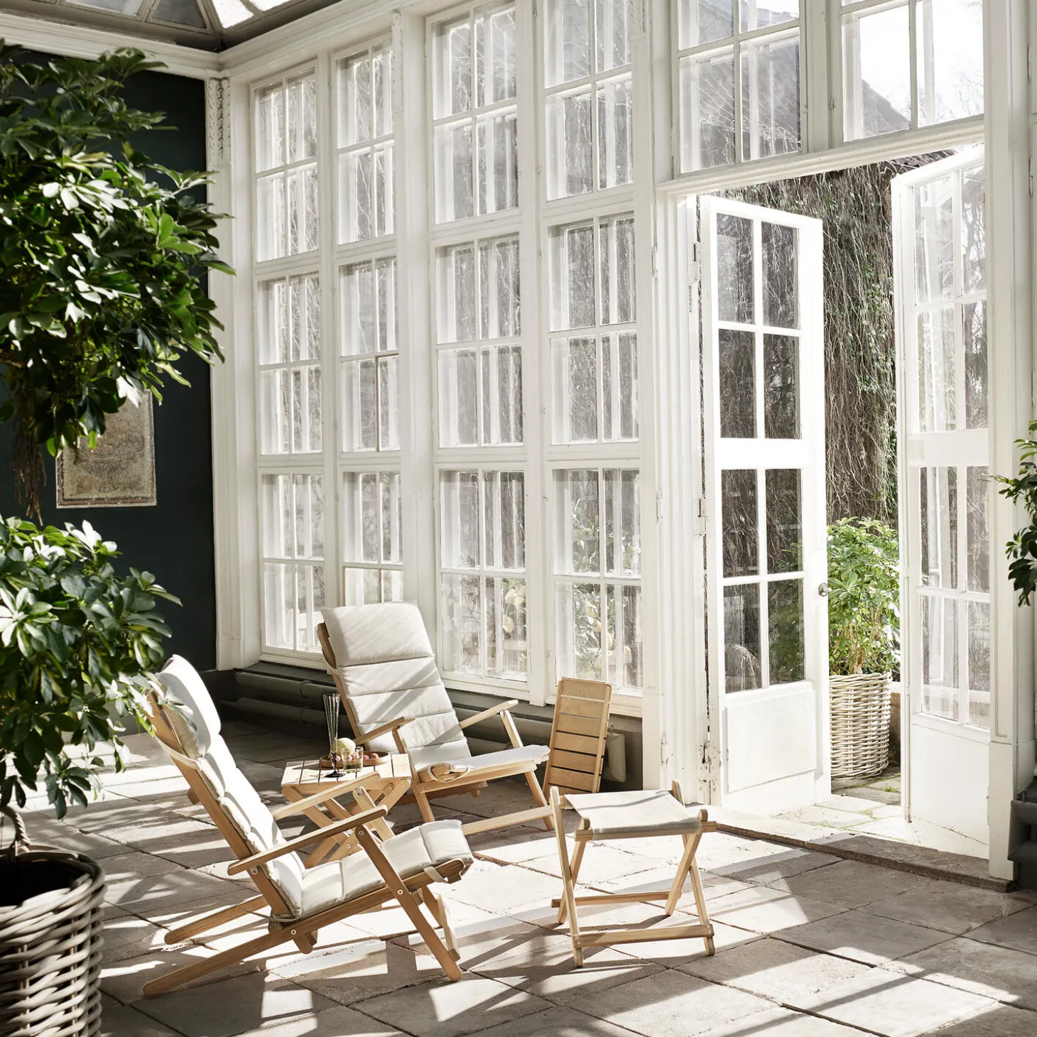 - Materiale: ubehandlet teak med hynde i Heritage Papyrus 18006 Sunbrella® tekstil