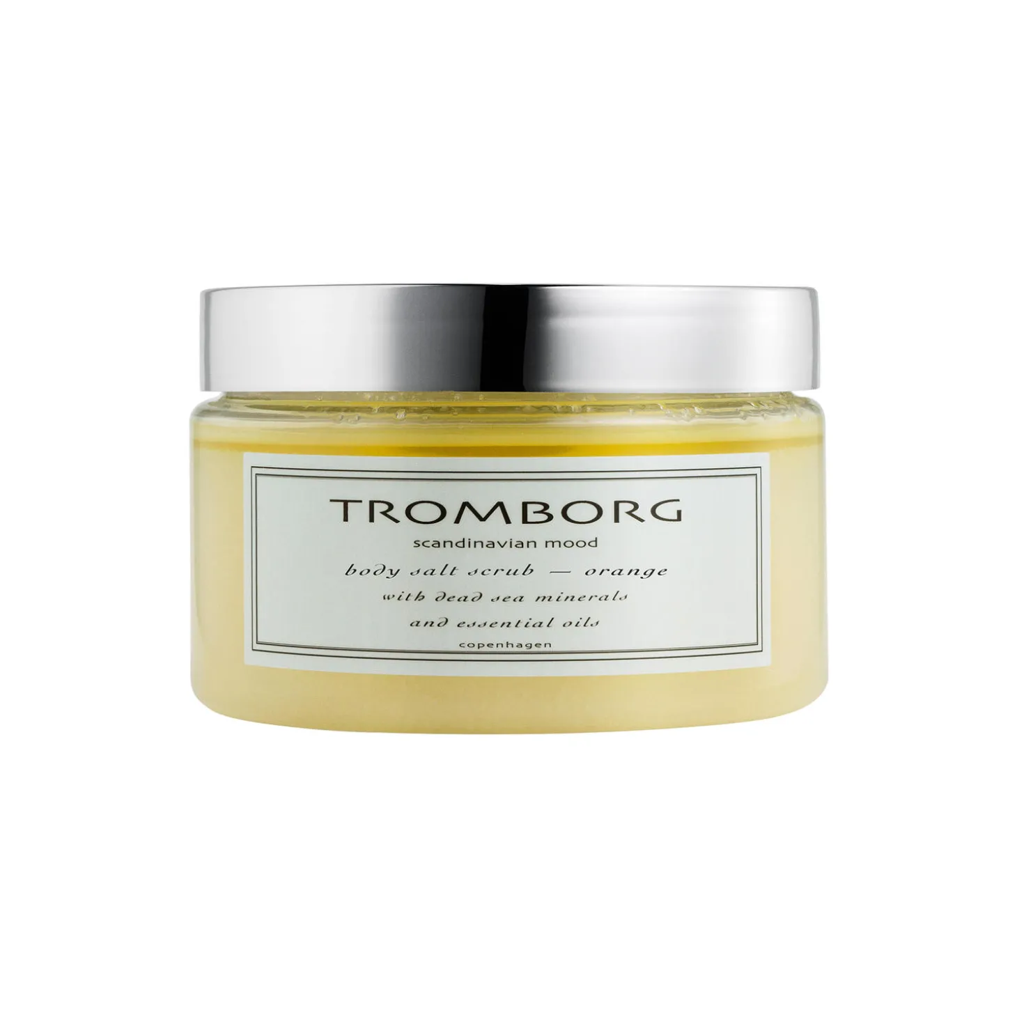 Den velduftende blanding af salt og olie, som masseres på huden i badet, stimulerer sanserne og giver velvære, samtidig med at den exfolierer og blødgør – huden føles som ny, fuldstændig fløjlsblød. Man kan hjælpe et sundere udseende på vej ved at exfoliere huden forsigtigt med Tromborgs Body Salt Scrub, som fjerner døde hudceller, så huden får et mere levende skær. Body Salt Scrub er en blid, exfolierende salt skrub med fint salt fra Det Døde Hav, mandelolie og æteriske olier. Masseres forsigtigt på huden med cirkulære bevægelser i badet og skylles nænsomt af med lunkent vand. Kan med fordel også anvendes på hænder og fødder for at modvirke tør hud.