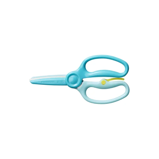 Børn er kreative genier, som skal have mulighed for at udtrykke sig frit og ikke støde mod andre grænser end dem, deres egen fantasi sætter. Fiskars børnesaks let øvet er nøje designet til små hænder og kreative ideer. De sikre, plastcoatede blade og en særlig træningsbøjle hjælper børn med at lære at håndtere en saks. Når træningsbøjlen er slået til, åbner saksen automatisk efter hvert klip. Børn i børnehavealderen kan derfor fokusere på at trykke saksen sammen og på den måde lære at klippe i papir. Når først de har lært dette første trin, kan træningsbøjlen slås fra, så saksen nu virker præcis som modellen til de store børn. De plastcoatede metalblade klipper let gennem papir og har afrundede sikkerhedsspidser. Håndtagets brede åbninger er designet til at hjælpe de yngste børn med at opnå et komfortabelt og nemt greb, uanset hvordan de holder på saksen. Den optimerede åbningsvinkel giver bedre kontrol, så barnet kan åbne saksen uden at miste grebet. Alle kreative genier fortjener at få lov til at udtrykke sig med den rette saks til det rette alderstrin. Denne saks egner sig til børnehavebørn fra 3 år.